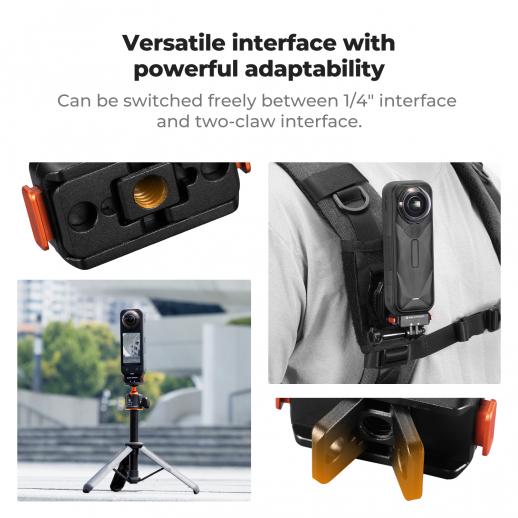 - * [Widely Expansion]: Botton 1/4" screw hole design, compatible with most tripod, ball heads, super clamps, selfie sticks, and other accessories, so you can easily connect your X5 to various devices. The foldable dual-claw mount can expand your X5 camera to headbands, chest straps, backpack clips, or any accessory that can be fitted with a folding finger, and can be folded up for easy storage and space-saving when not needed