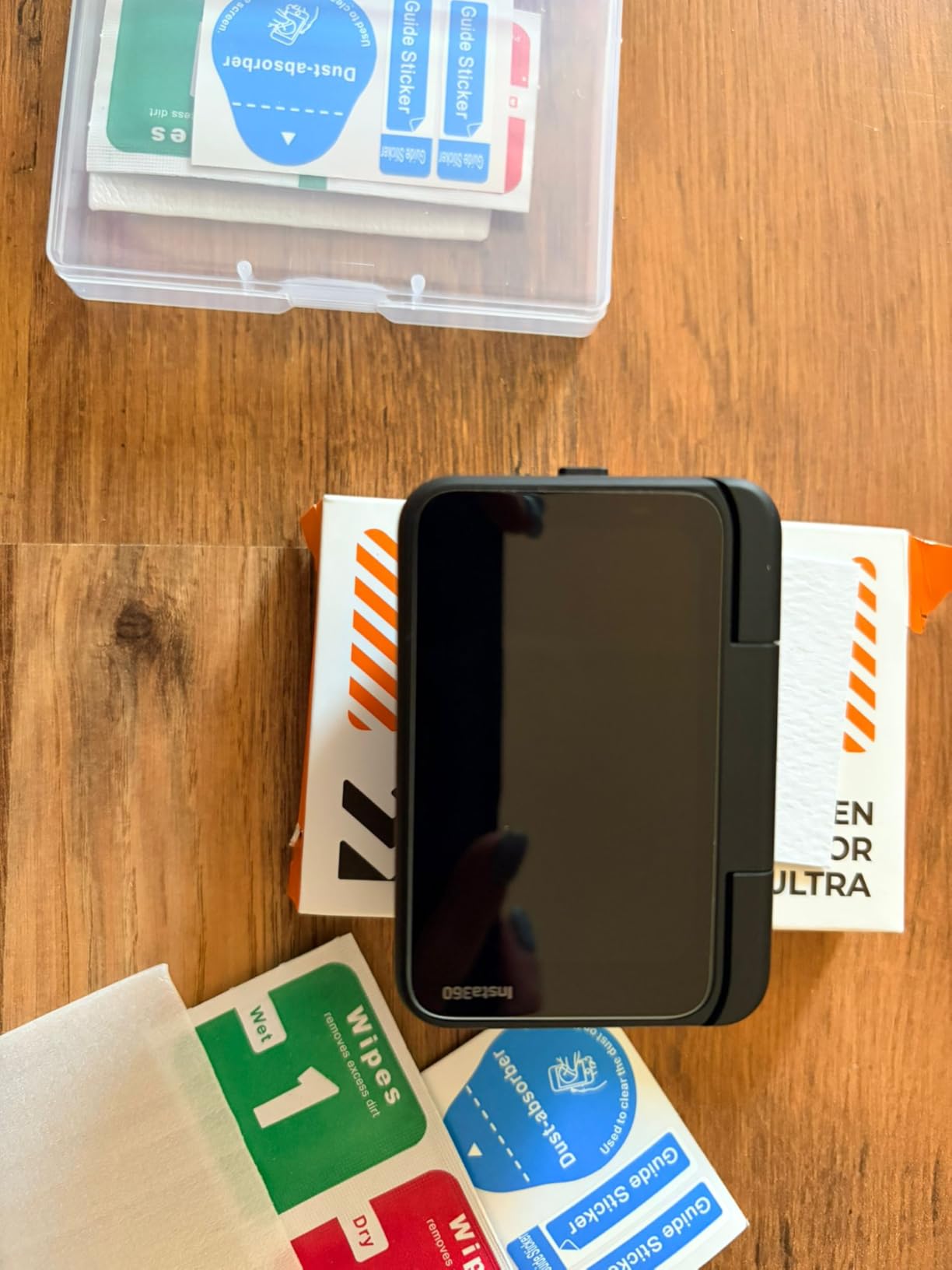 I did find this a little tricky to apply and the guides are essentially pointless because they are here to allow you to position the glass properly... But that means you need to position the guides correctly in advance to is feels like an unnecessary step. personally i recommend just going straight for the glass.