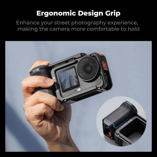 K&F CONCEPT Metal Street Grip Kit for DJI Osmo Action 6, Camera Grip Handle Holder Set (Camera Grip + Cage), Cold Shoe, Quick Release, Shutter Button, Wrist Strap
