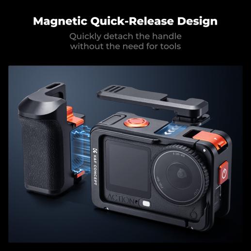 - * Snap On, Snap Off: With the magnetic quick-release system, the handle securely snaps onto the cage and detaches just as easily. Enjoy effortless setup and the freedom to go handheld in seconds, no tools required.