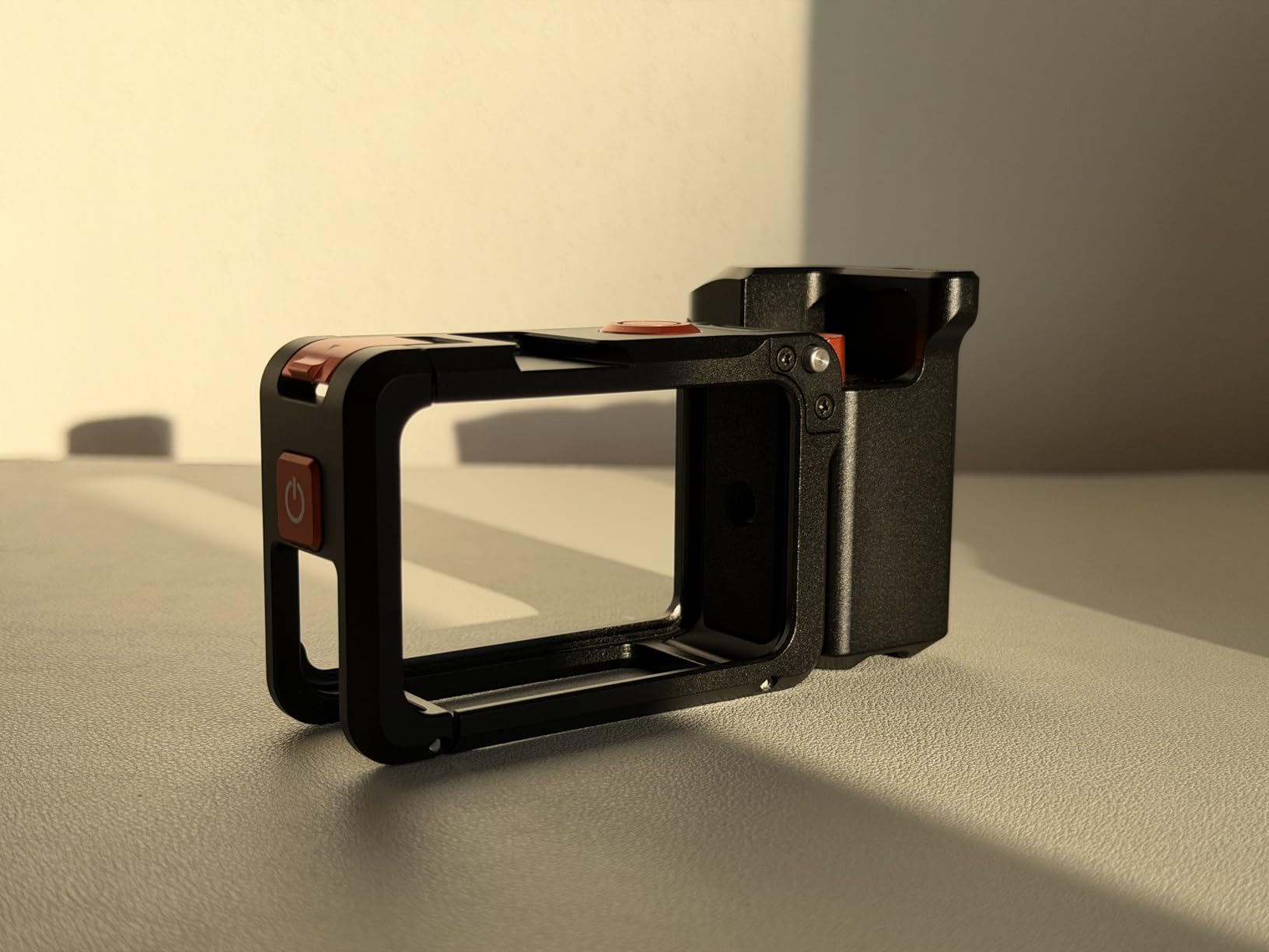 What I also like is the overall high-quality look. The set doesn't feel like cheap accessories, but thoughtful and practical. The cage is permanent on my Action 6, regardless of whether the handle is on or not. The hot shoe at the top is practical if you want to mount a small light or microphone and significantly expands the range of uses. Especially because a hot shoe is also milled into the extended trigger, it is good to think about it.