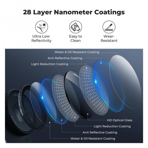 - * [Top AGC Optical Glass With Nano Coating]: Made of high-definition premium AGC optical glass, double-sided with 28 multi-layer nano-coating, ensures ultra-low reflectivity with no effect on the image clarity and sharpness, features water repellent, and scratch-resistant, which could protect your valued lens.