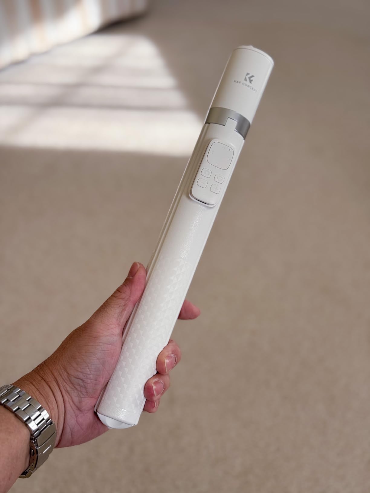 I’ve gone through my fair share of selfie sticks and phone tripods over the years, and nothing has come close to the K&F CONCEPT 69" Selfie Stick. This handy-dandy phone-holder assistant is honestly in a league of its own. It’s easily the most solid, well-constructed phone tripod I’ve used so far. The setup is almost laughably easy. The pop-open, quick-fold design practically does the work for you. No fumbling, no overthinking, no tiny parts, no nonsense. It just works with minimal effort.The 360° rotation is silky smooth, and best of all, it actually stays where you set it, which is a rare blessing. Whether I’m filming content, taking family photos, or hopping on a live, the angle control feels effortless. And the 9-button Bluetooth remote? That’s the star of the show. It’s a huge upgrade compared to other styles and brands. Incredibly responsive, very reliable, and clearly designed with real users in mind. The ability to take continuous, rapid-fire snapshots without missing a beat is honestly impressive and the remote controller is magnetic and quickly snaps right into it's remote dock located on the foot of the tripod.The height is fantastic too. At 69 inches, you get those professional, elevated angles that make every shot look like you had a tiny production team helping you out. Yet it still folds down small enough to toss in a bag ... it’s basically the size and weight of a handheld umbrella. The tripod base spreads out to about a one-foot radius, giving it plenty of stability without feeling oversized. It holds the stand and the weight of the phone beautifully without any wobbling or fear of it toppling.Overall, it’s undeniably sturdy, high-quality, and thoughtfully engineered from top to bottom. Yes, the price is a little higher than the bargain options out there, but the dependability and peace of mind make it worth every penny. Plus, it looks sleek, modern, and just plain cool.This one easily deserves 5 stars. Highly recommend.
