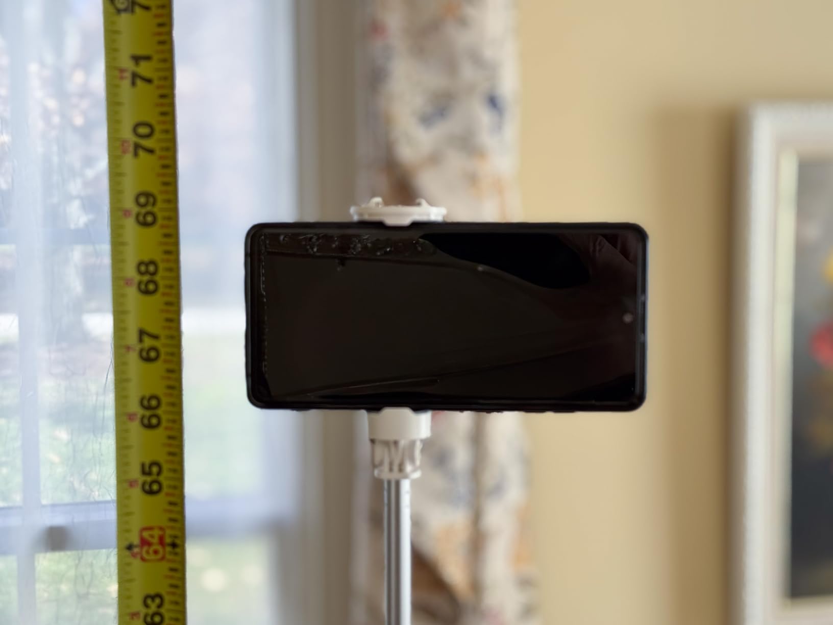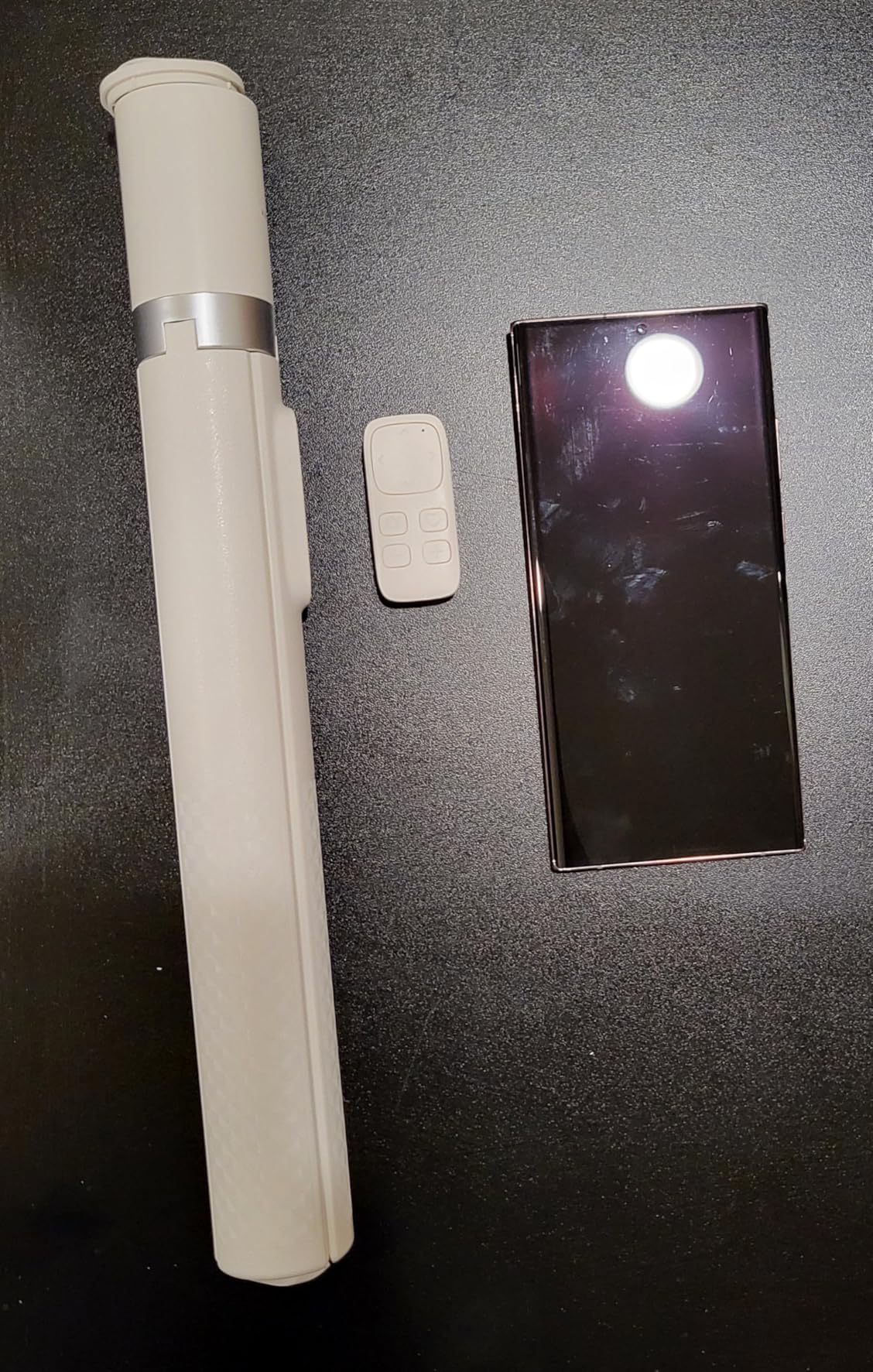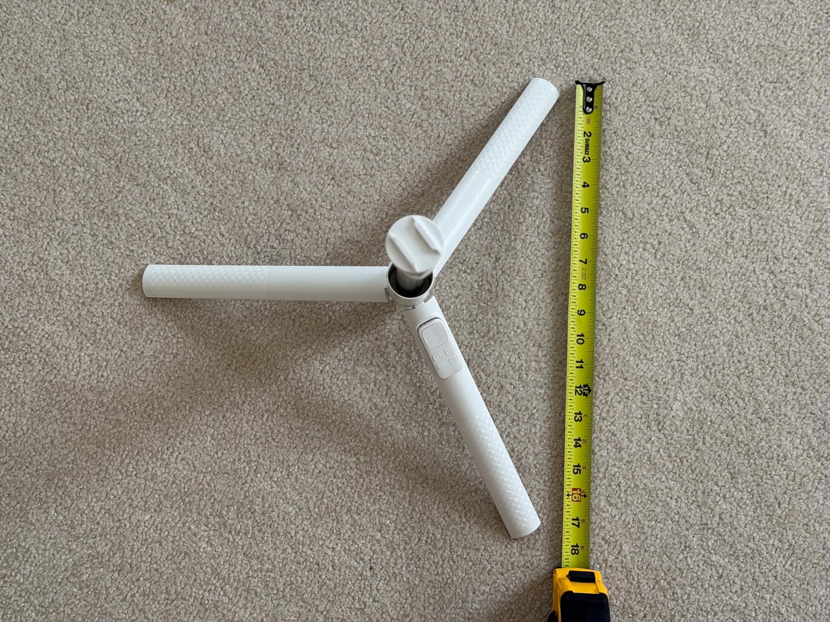 This is a big boy. It is more like a selfie torch than a selfie stick. At about 13 inches when folded, it is already larger than most portable sticks, and when fully extended it reaches roughly 69 inches, which is about the same height as my Manfrotto 290 Xtra tripod. Very impressive for something portable.- Sturdy aluminum and plastic build that feels solid even when fully extended- Legs spread wide enough to keep the whole thing stable on flat surfaces (on carpet in these pictures)- Extends high enough for overhead shots, group photos, or livestream angles- Clamp opens wide and firmly grips the phone without wobbling- 9 button Bluetooth remote is convenient and works well- Folds down neatly and can still fit in a backpack or tote (13")If you want something taller and more substantial than the usual compact selfie stick, this one delivers.