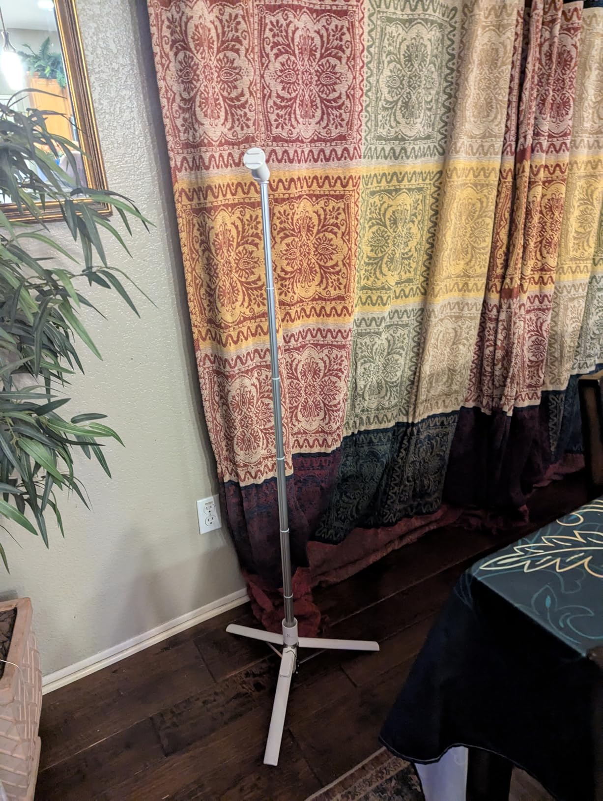 I'm a big fan of K&F products and this is another fantastic product intelligently thought out and executed. When stowed it takes very little space so it is easy to travel with. It is highly adjustable anywhere from about 1 ft to just barely short of 6 ft in height. It holds your phone side saddle but the top can pivot a full 90 degrees to the side so your phone can be used either on its side or straight up and down. It comes with a Bluetooth remote that syncs with your phone that just makes taking photos and videos a breeze. It took me a minute to figure out how to open it but once you figure it out it is very easy. Simply hold it at the top with one hand and then there is a piece at the bottom you can grab with two fingers. Spin it either direction and the legs pop right out. To extend the arm to desired height simply pull. It extends and slides back into itself with the right amount of resistance that you don't have to worry about it moving under the weight of your phone. Stand is extremely stable even at full height.