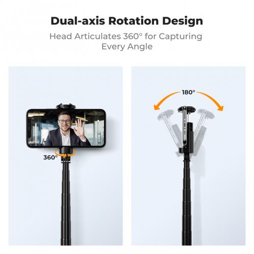 - * Dual-axis Adjustment: This selfie stick for iPhone features an adjustable dual-axis design, supporting 360° horizontal rotation and 180° vertical rotation. Whether it is horizontal, vertical, overhead or tilt, you can find the ideal shooting angle. As a result, K&F Concept phone tripod is ideal for travel, live streaming, family gatherings, and more.