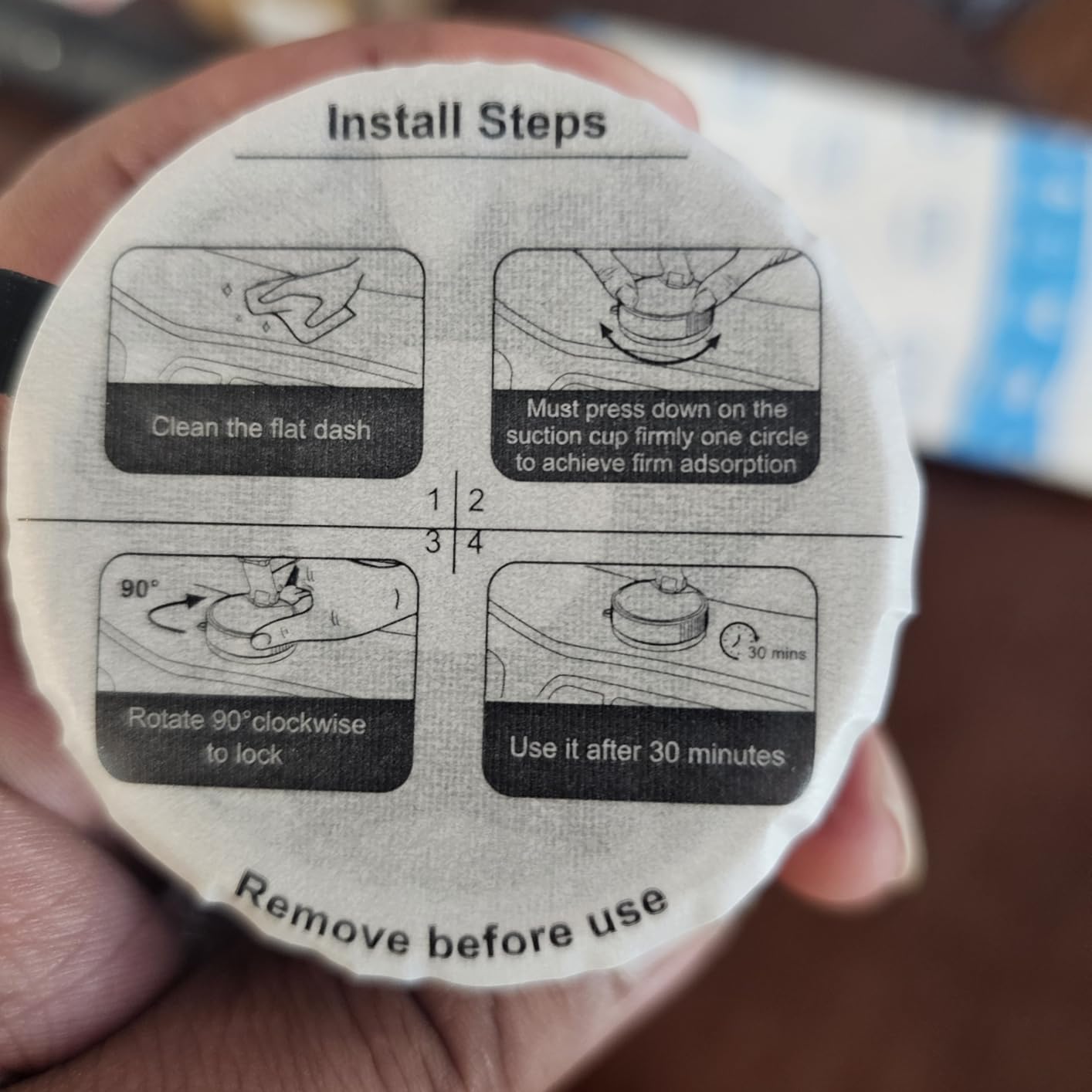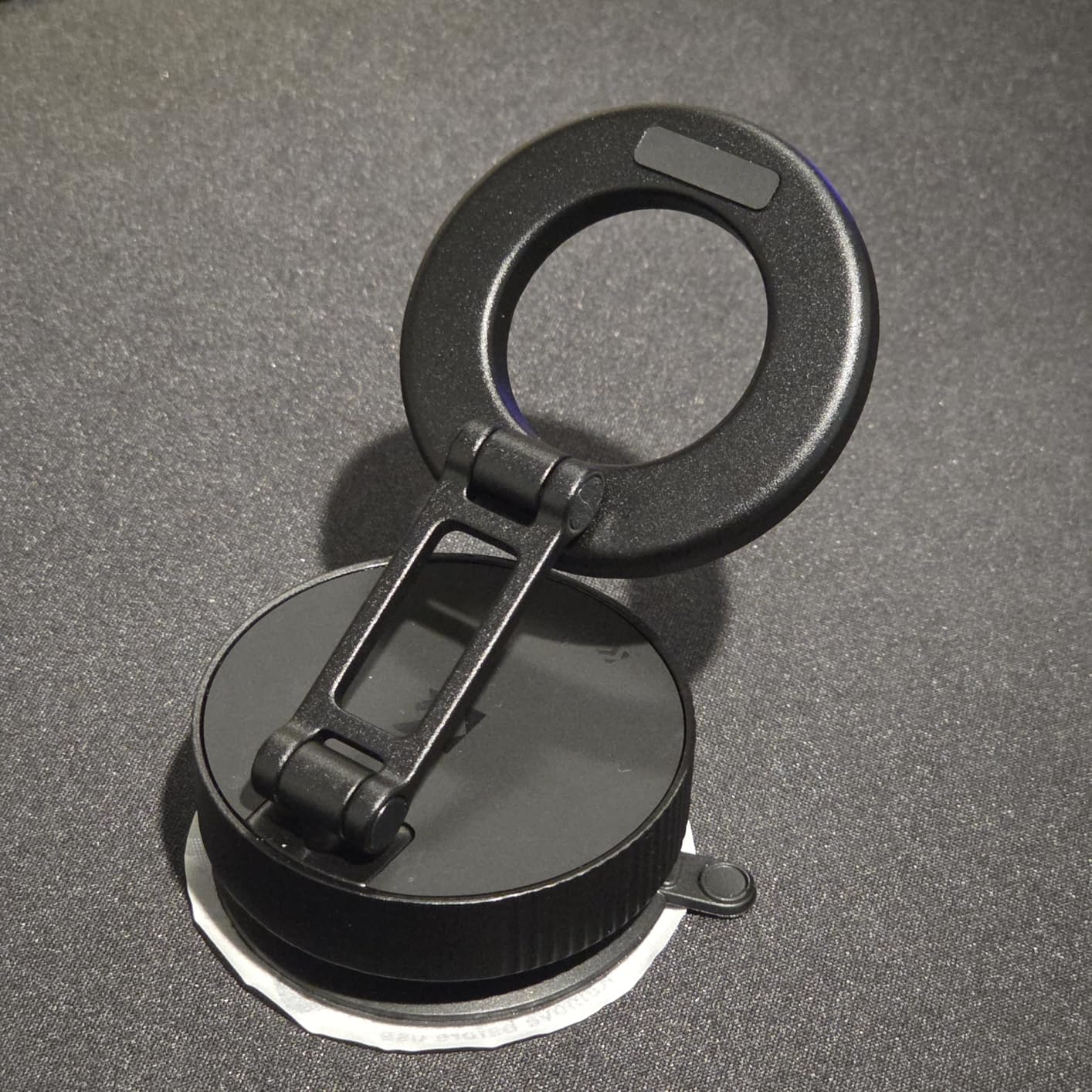- * Wide Adhesion Surface: This magnetic phone mount features a nano-gel suction cup base combined with a vacuum-sealing mechanism, enabling it to adhere to diverse surfaces such as desktops, refrigerators, walls, glass, smooth dashboards, hard leather, and fitness equipment. To install this vacuum magnetic phone holder, first ensure the suction cup lies flat against the surface, then rotate the locking mechanism clockwise until fully secured. (Allow 12 hours after attachment for optimal suction strength)