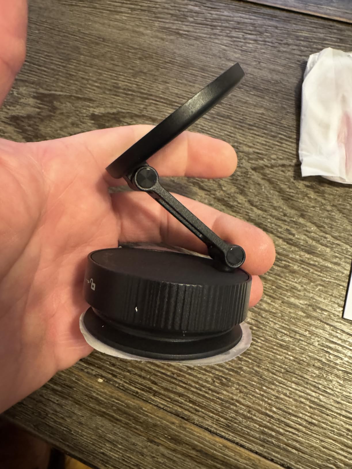 This is a great magnetic phone mount!The magnets are strong, but they still release my phone grip without attaching it from my phone. I also like that there is a hole in the center, so it can be used with a pop socket if I wanted to.The extendable arm and linkages are all stiff enough that they stay in place where you want them, but not too stiff to adjust.It has a sticky suction cup mount, so it should stay in place really well.