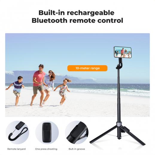 - * Bluetooth Remote & Stability: This iPhone tripod comes with a rechargeable Bluetooth remote, free your hands for effortless shooting. This selfie stick for Android features an aluminum alloy telescoping pole. When fully extended, its tripod legs reach a width of 15in/39cm, providing stability that makes it an ideal choice for content creators and vloggers.