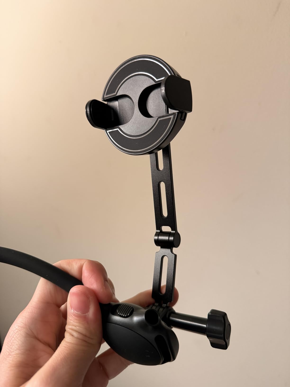 I like this neck mount a lot. It was easy to set up and it makes filming hands free, which is great when I need to record while moving around. The magnetic mount holds my phone securely, and it also comes with a ring so it works even if your phone is not MagSafe. I can switch between portrait and landscape by just rotating it, which is helpful for different types of videos. The strap feels comfortable and keeps the phone stable when I walk. The only thing is that sometimes the phone sits a little close to my face, so I just adjust it or step back when I need a wider shot. Overall, it does what I need and has been very useful.