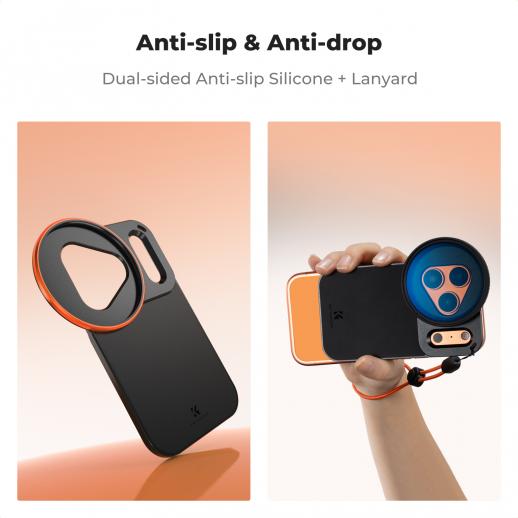 - * 【Compatible with iPhone 17 Pro】K&F CONCEPT iPhone filter mount custom-developed precisely for the lens module of iPhone 17 pro, with a triangular lens cutout and a rectangular deco cutout that fit the body. The design of a large flash opening + antenna hollowing prevents light leakage and does not block the signal. After wearing, the iphone camera lens and flash are not affected at all.