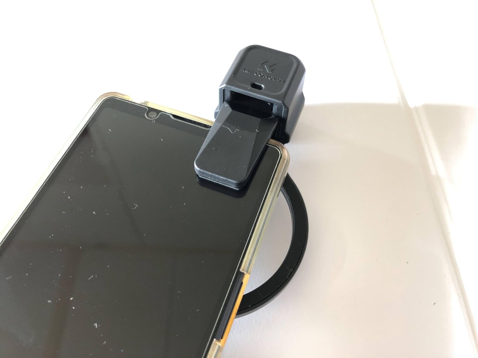 ○ The brand K&F Concept sells a lot of camera-related products with low prices, good quality, and cool design, and it's a brand I trust, and I love several products, and I don't often lose money. ○ Case The case thickness is 43 mm, and filters up to about 20 mm can be stored and carried at the same time as this clip. ○ The size of the hand strap can be adjusted to 0-240 mm (diameter 0-76 mm when turned into a ring), and the strap cord has moderate slip resistance, which helps hold the smartphone in some cases. ○ Clip Since the place where it is clamped to a smartphone extends up to 11 mm, it can be attached to a smartphone in a regular case without any problems. The photo also shows a 214g Kenko AC Closeup Lense No17 attached, but even with such a heavyweight close-up lens, I was able to shoot stably by aligning the optical axis. I can recommend it as a very good product.