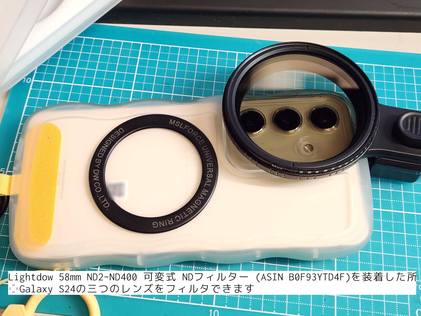 [Excellent unique lock mechanism] The biggest stress when shooting filters with a smartphone was “misaligned clips” and “trouble attaching”, but this product solved that perfectly. It is not an open leg like a typical clothespin, but it has a structure where the arms rise and fall in parallel. Therefore, force is always applied perpendicular to the lens surface of the smartphone, and it is wonderful that the filter adheres perfectly without floating. The unique push lock button is also excellent, and positioning can be performed simply by pressing and sliding, and when you release your finger, it is firmly fixed. [Use the equipment you have on hand] It's more convenient than you can imagine that the 58mm diameter filter for single-lens reflex cameras that you had left over can be used directly on your smartphone. There is no need to go out of the way to buy a new magnetic filter etc. for smartphones, etc., and the range of shooting expanded all at once, such as turning off reflections on the surface of the water with a PL filter and cutting the slow shutter with an ND filter. The screw cutting part is made of metal, so there is no need to worry about it being scraped even if you put it on and take it off frequently, which is also a good impression. [Points of interest] The depth of the clip may be slightly severe compared to the large camera units (overhangs) seen in high-end smartphones these days. There was no problem with my model, but if you wear a thick shockproof case, etc., there is a possibility that the pinch will be shallow, so be careful. Also, although the aperture of 58mm is large enough, vignetting may appear at the four corners when using an ultra-wide-angle lens, so in that case it is an operation to avoid it by zooming slightly. [Overall Review] This is a shooting aid tool with a very thoughtful design that sets it apart from a simple plastic clip. It's lightweight at only 19g, and comes with a strap just in case, so it's not a burden even if you keep it hidden in your luggage during a shooting trip. If you have an SLR or mirrorless camera and know the fun of filter work, you should be extremely satisfied as an accessory you can get in this price range.