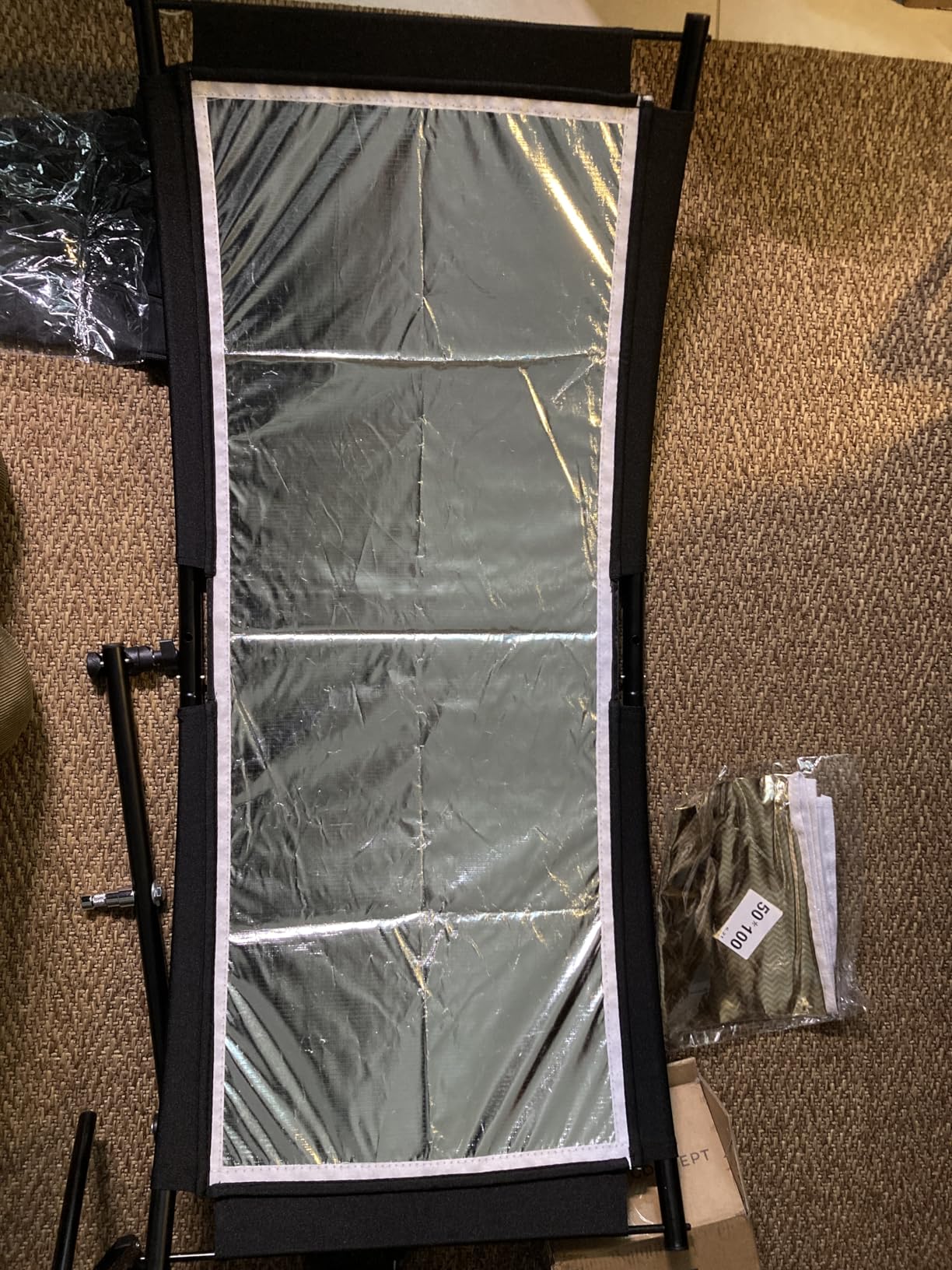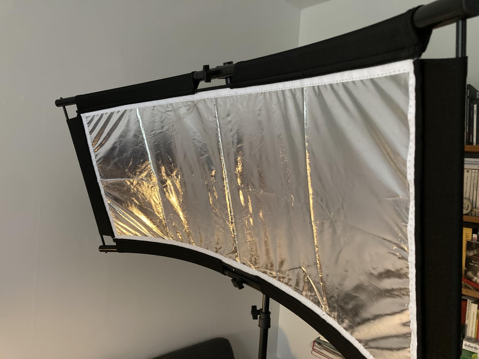 Removable kit to create a large curved reflector. I was surprised by the compactness of the box when you see the size of the reflector once mounted. The latter is really very large and allows to offer a fairly homogeneous light on subjects. I liked