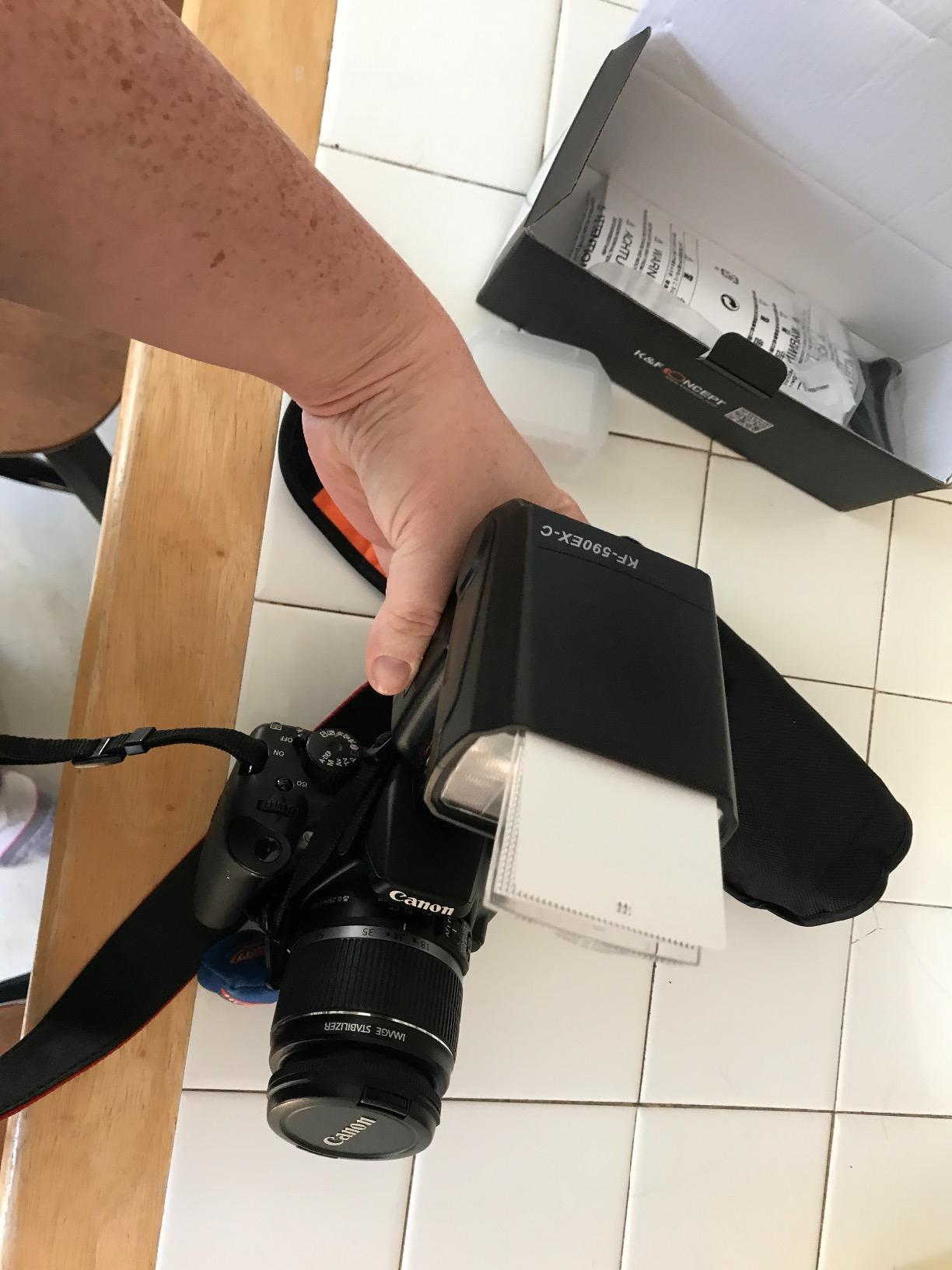 This is a great lens , I'm always worried about compatibility when buying un branded camera gear . This external flash was awesome though attatched and tightened easily to my Canon EOS rebel. Comes with a nice little carrying pouch and flash shield guard . Buttons are easy to use and navigate with different settings . I was expecting this to draw power from the camer itself but does require 4 AA batteries which aren't included .