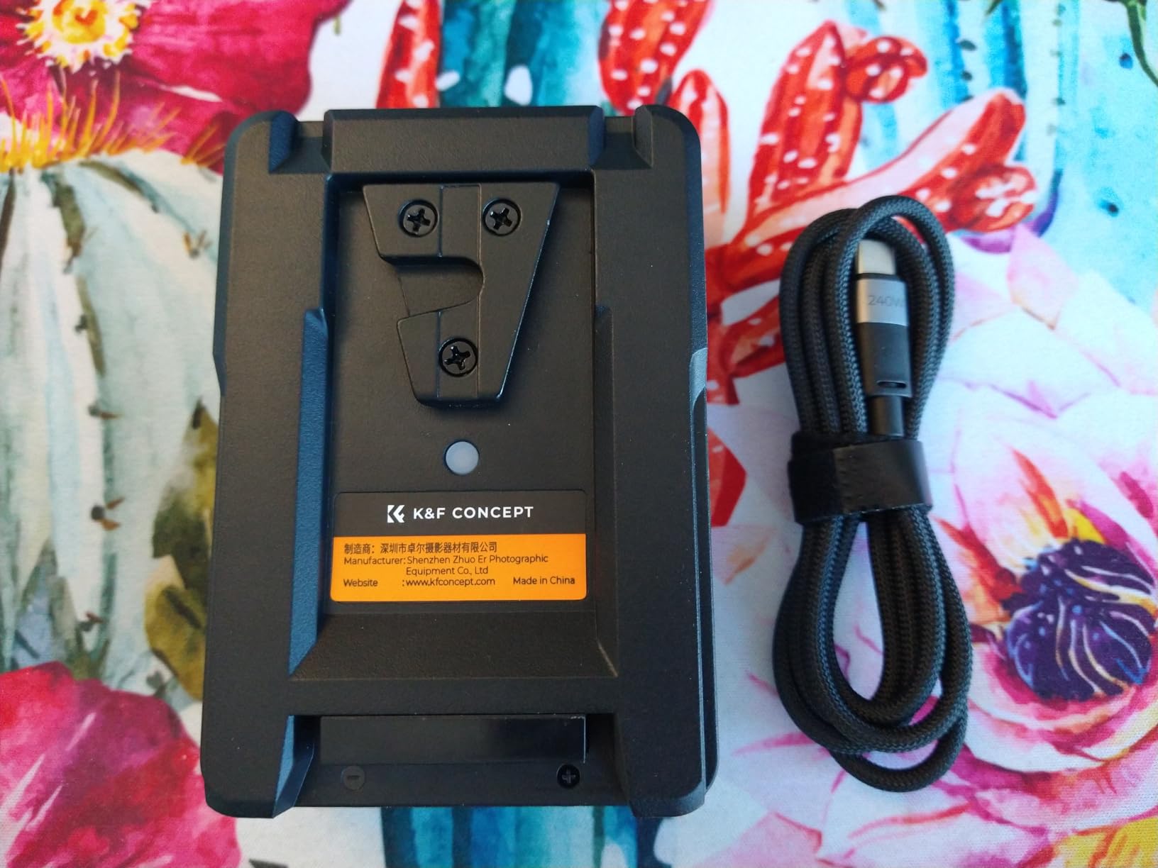 I like that this battery comes included with a braided 240W rated USB-C cable; I can confirm that this USB-C cable can reliably deliver 65 watts to my video light that accepts USB-C power delivery. Functionally, the battery works and fits securely in my v-mount bracket adapter.
