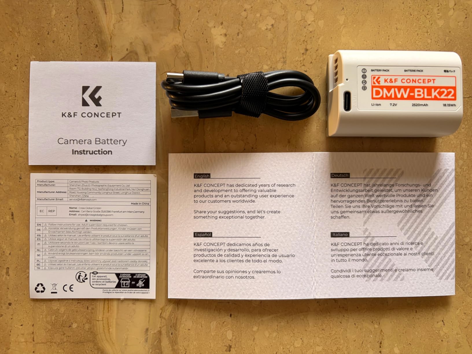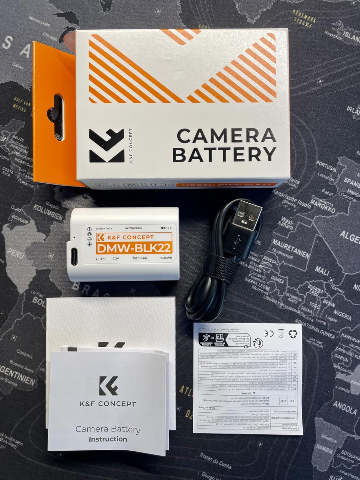 The K&F CONCEPT 2520mAh DMW BLK22 battery fits my Panasonic Lumix S5 perfectly and performs exactly as expected. It comes with a USB-to-USB C charging cable and clear documentation.