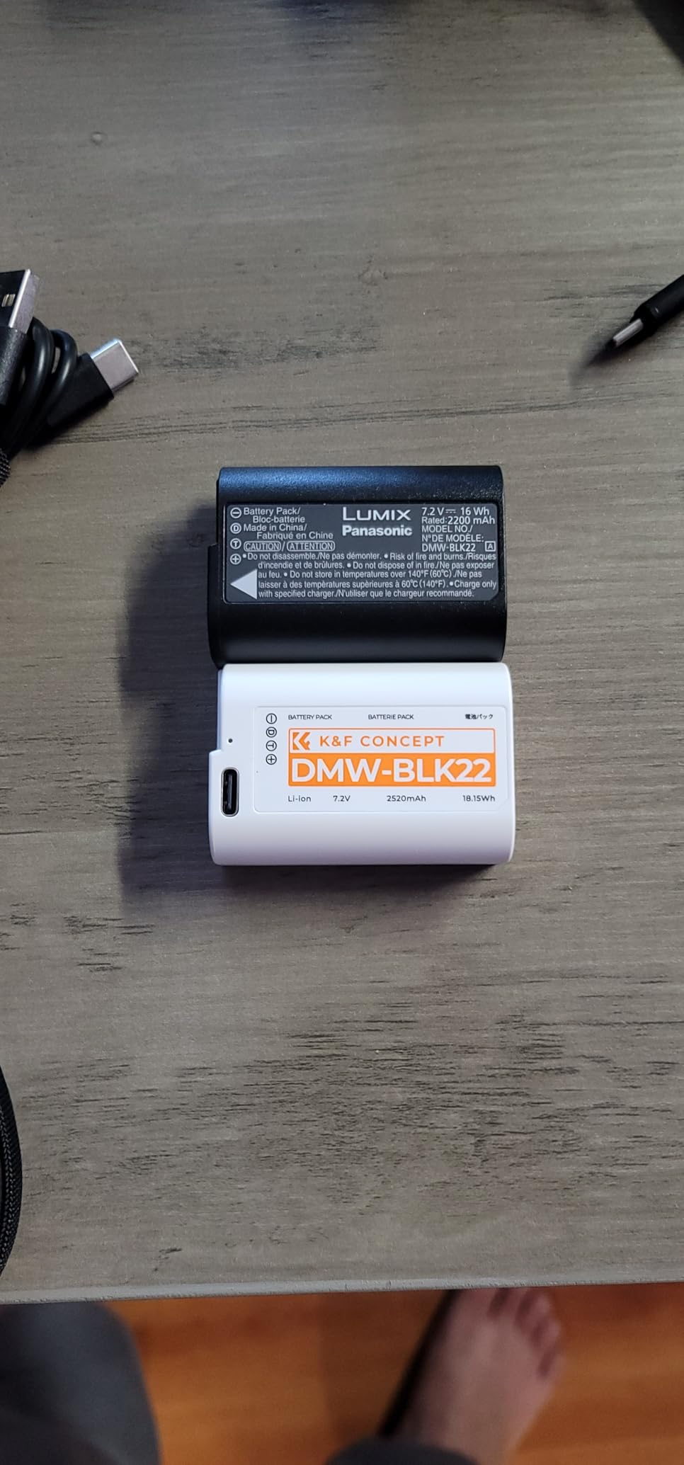 These K and F Concept 2520 milliamp DMW BLK22 batteries feel high quality from the moment you open the package. They do not feel cheap at all. The built in USB C charging is a big plus since you can charge them directly with a standard charger and the included cable, without needing to carry a separate battery charger.