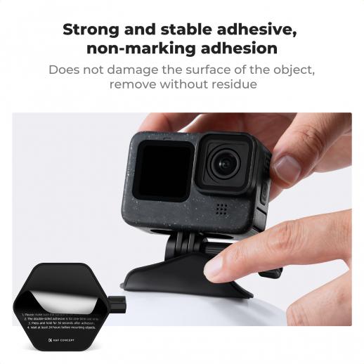 K&F Concept 2-pack Flexible Adhesive Helmet Mount use Genuine 3M for GoPro Hero13/12/11/10/9/8 Max DJI Action 5 Pro 4 3 Insta360 X5 X4 X3 Ace Pro 2 Sports Camera Accessories Flat Curved Surfaces