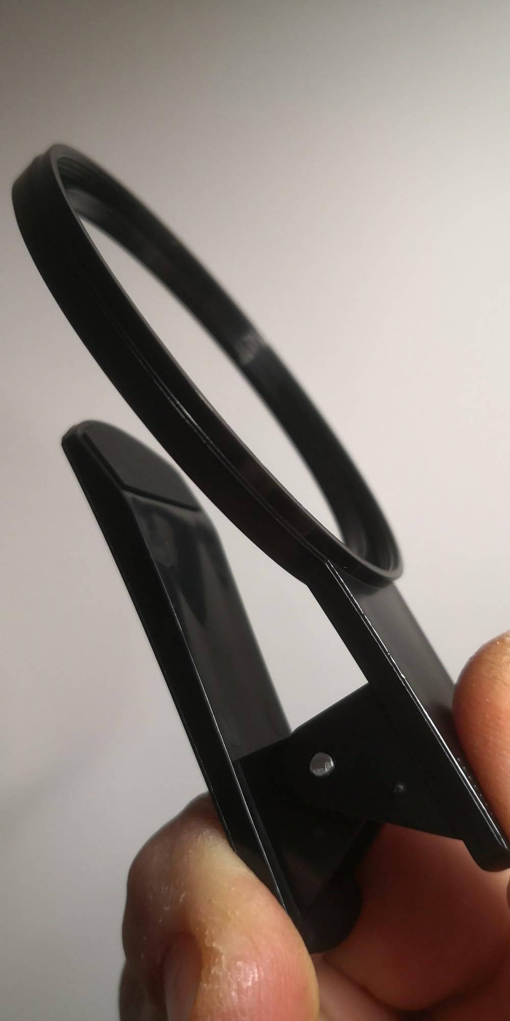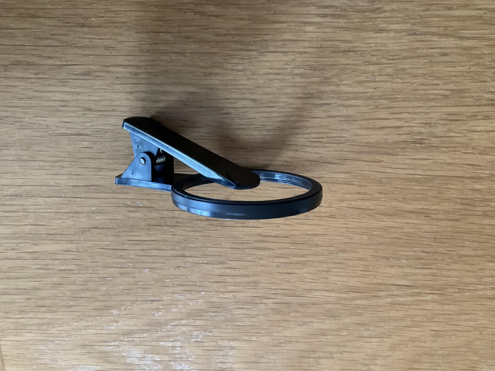 This is a light plastic construction clip which is ideal for ND and other filters for phone photography and videography. I use 67mm ND filters to allow me to shoot 24fps video on my phone. This clip has just enough pressure in the spring to hold the filter in place without slippage. The rubber circular pad on the back of the clip (behind the filter) also helps to keep the clip in firmly in place on the body of the back the phone.My previous filter holder was held in place by a large padded screw which could easily be over-tightened and thus risk damaging the touch screen. But this clip has just the right amount of pressure in the spring to prevent that kind of problem. The touch actions on the screen are unaffected by having the clip in place, and the rubber pad on the clip face should prevent any risk of scratches to the screen.The plastic construction feels strong enough for regular use, but you can feel a slight amount of flex in the clip body. This actually helps the filters to be screwed in very smoothly without the metal-to-metal rough feel you can sometimes have with metal filter holders. I’m very pleased with this so far, it has become my go-to filter clip because it is so quick and easy to use.
