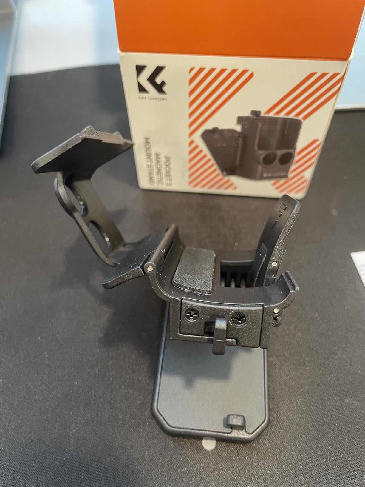 I’ve been using this magnetic mount with my Pocket 3 for a couple of weeks now. The magnetic hold is stronger than I expected—I’ve attached it to my fridge, gym rack, and even my car hood without any slipping. It locks in place really well.I like how lightweight it is, but still feels solid in hand. Adjusting the angle is quick, and the base design lets me plug in the charger without removing anything. The setup process was pretty simple too, just a few snaps and it was good to go.