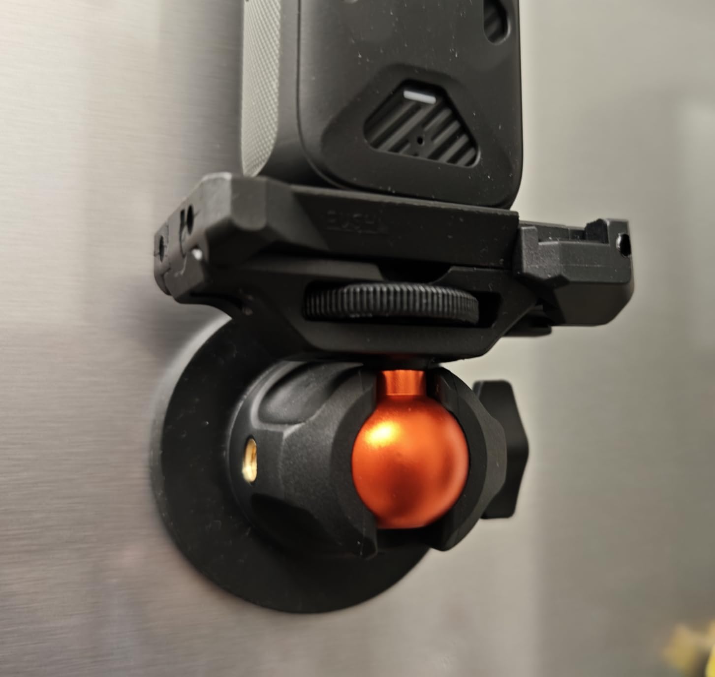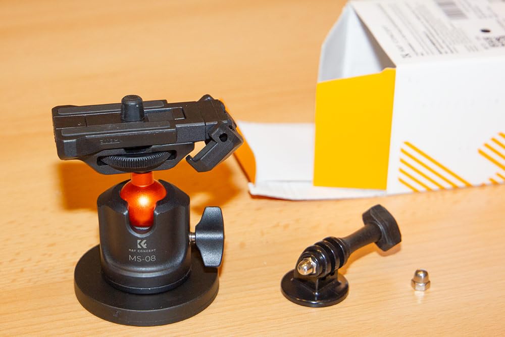 The ball head is very well made and makes a very sturdy impression. The parts are modular so that you can screw on both the magnetic plate and the action cam mount. The magnetic plate does a very good job and holds perfectly. I've attached my Insta360 cameras in several places and haven't had any problems yet. I am very satisfied with the overall package.