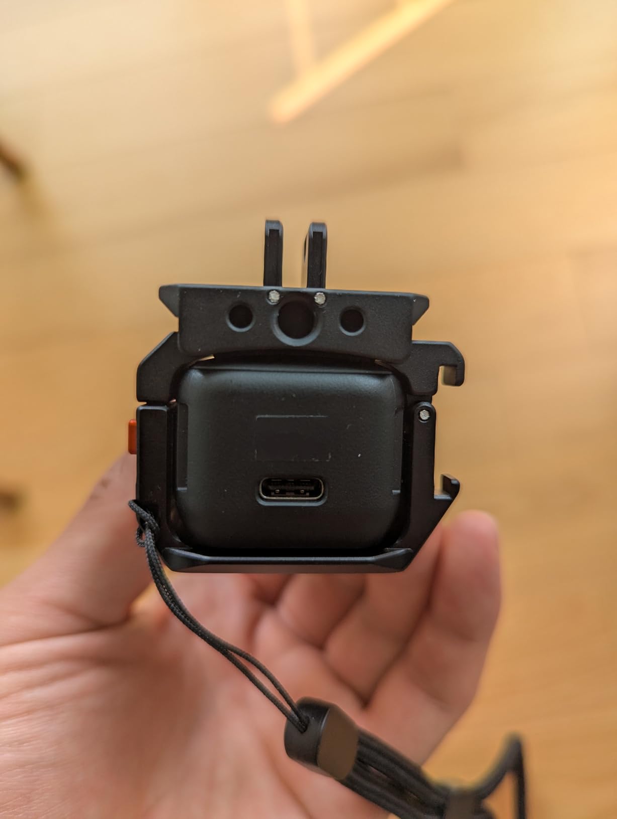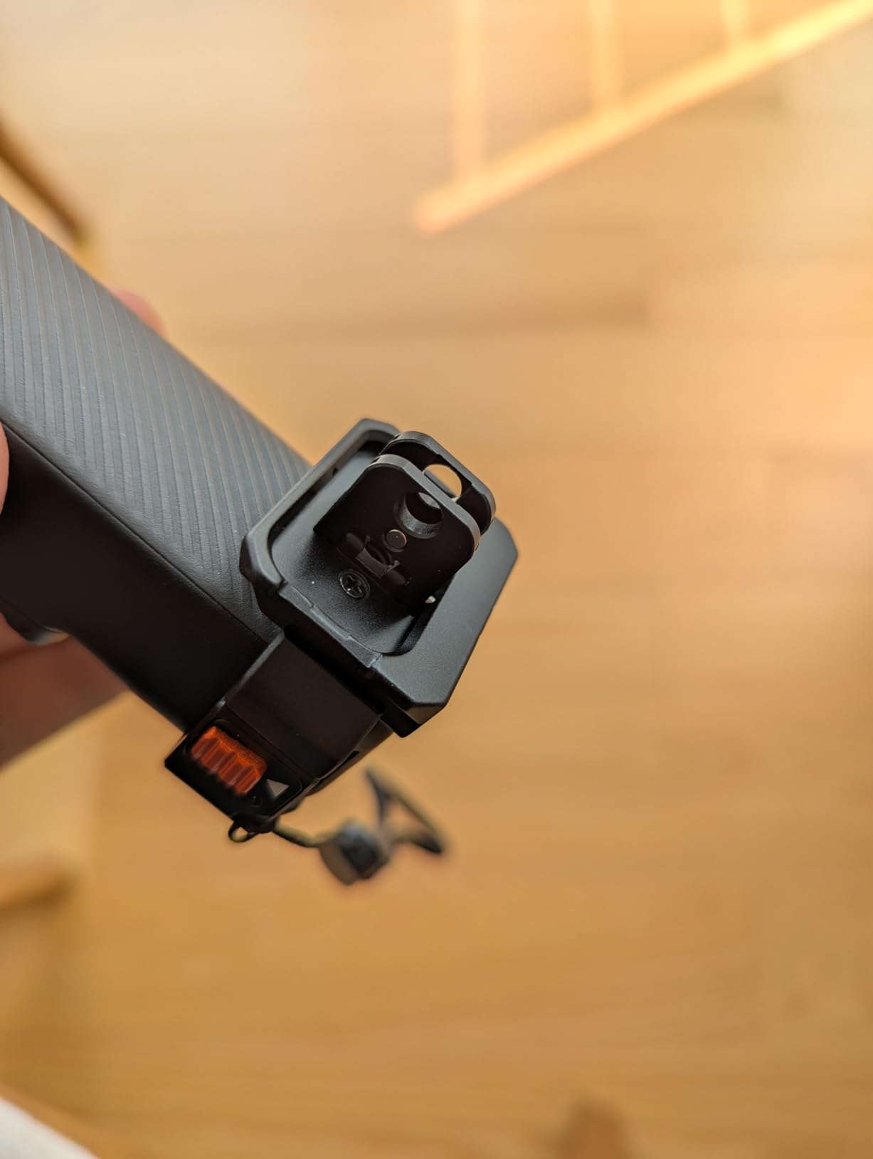 The TF card slot remains accessible despite the adapter being mounted, so that the memory card can be quickly changed without removing the frame, a well-thought-out detail. A small downside is the handling when inserting and removing the camera. That works, but not quite as smoothly as you would like; a more intuitive mechanism would be desirable here. The additional weight is also quite noticeable during longer handheld sessions. My conclusion: