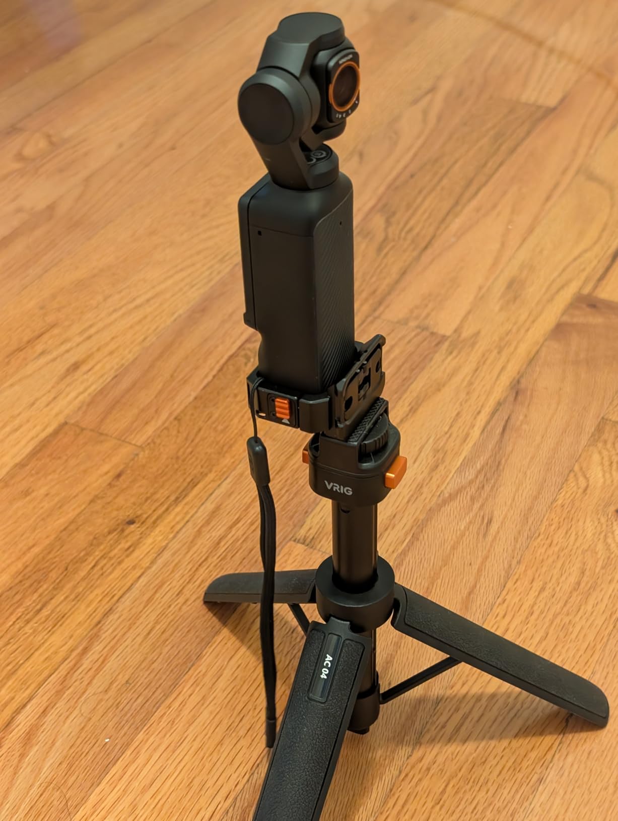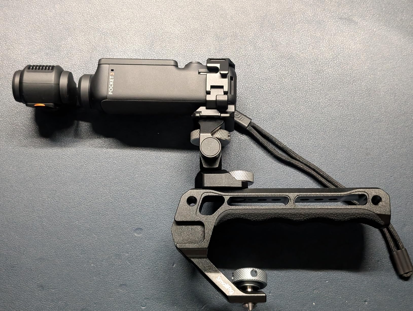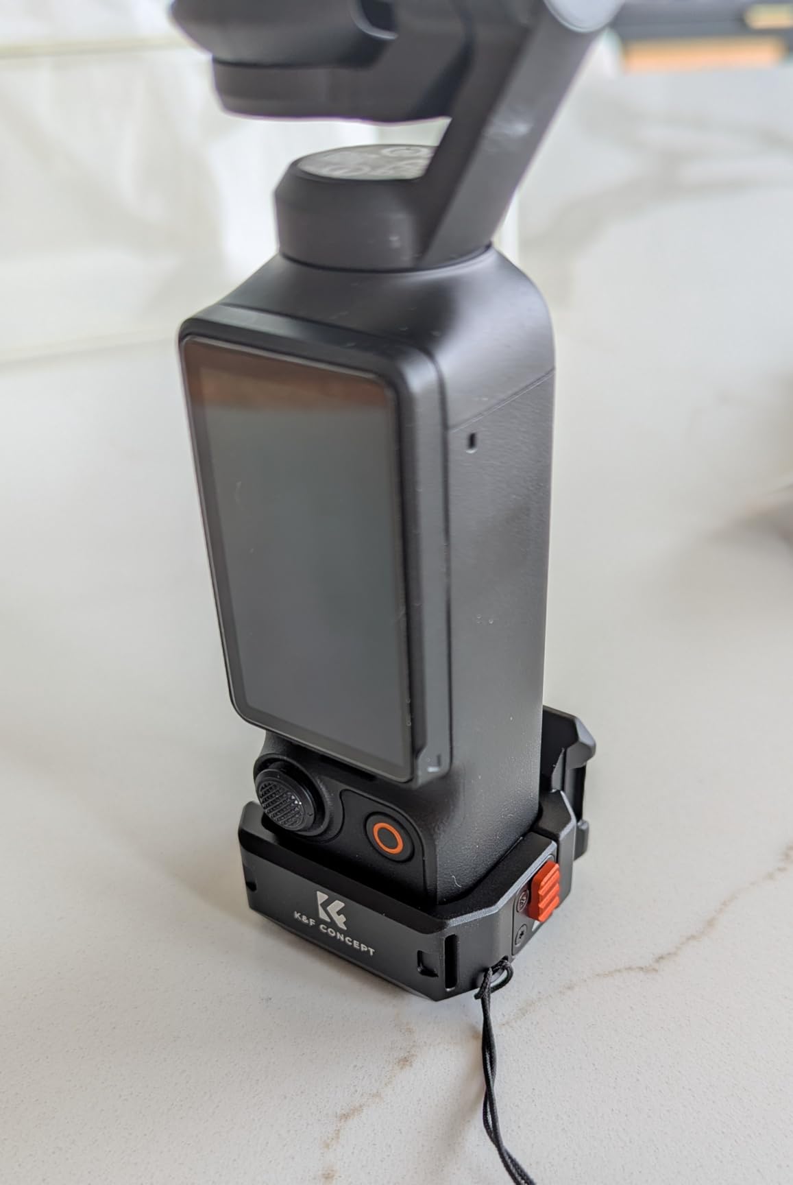 This sturdy metal adapter is really unique. It actually allows you to stand your Osmo Pocket 3 on a flat surface on its own. You can easily screw it onto a tripod, as I did in the photos. It has a cold shoe. It is a quick release latch. I was a bit worried at first that it might not stay on and I could drop it, but it seems to stay on well so far. The only downside is you have to remove the lanyard to put it on. You can run it through both, which would actually ensure it stays on, but then it's not quick release. Overall, this is a great accessory and I'm enjoying use it. I can recommend it.