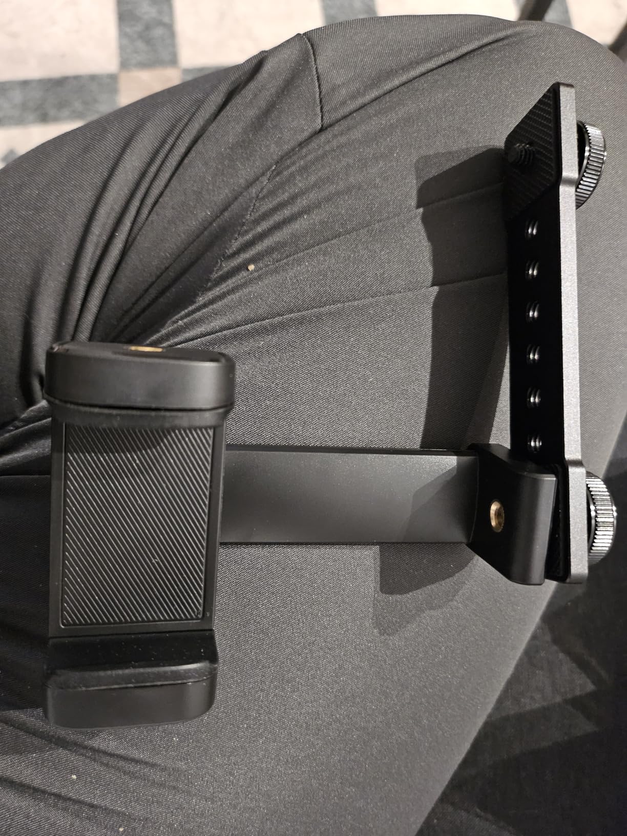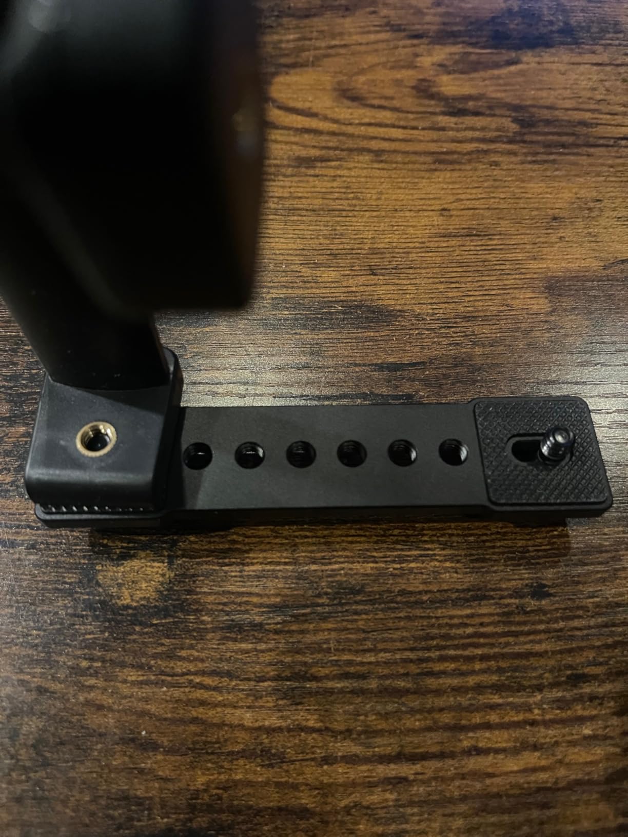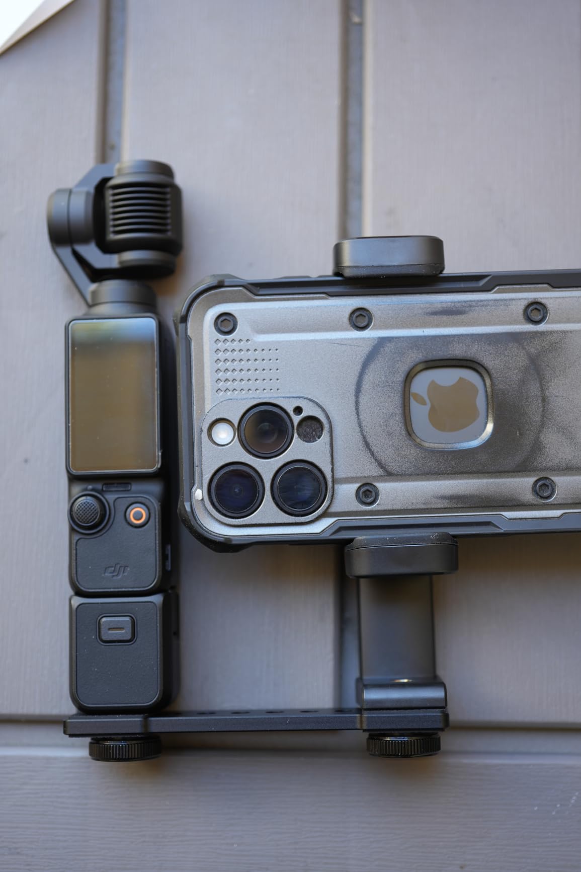 The simple design made right is just what I needed for my Action 5 and Pocket 3. The metal bottom plate has multiple 1/4 holes for use with a stick or tripod. One side has a steady 1/4 screw and the other has an adjustable 1/4 screw. Both have a rubber base and a tightening ring. The phone holder is one of the best I've used. It opens with ease, extends to support larger phones and the phone grip is thick, helpful holding phones with large cases. It also has a 1/4 hole to add accessories. Add a light or mic with ease. I can record with both my cameras at the same time or use my phone for a larger screen and camera control. An extremely great tool to have for video recording. Love it.