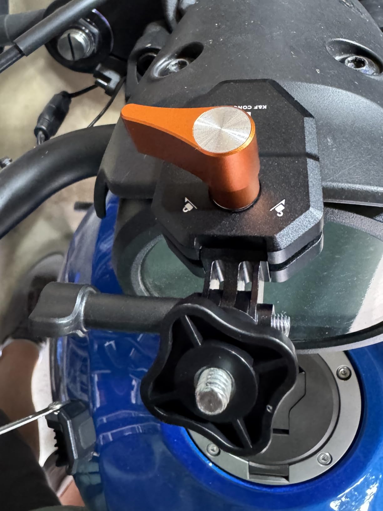 So I picked up the Motorcycle Windshield Clip Mount for my GoPro Hero before a weekend ride through the Cascades, and honestly? I didn’t expect to be this impressed. This thing is built like a tank but installs like a breeze.First off, the build quality is top-notch. It’s made from CNC-machined aluminum alloy, so it feels super solid in your hand—none of that cheap plastic flex you get with lower-end mounts. The silicone padding on the clip is thick and grippy, so it doesn’t scratch your windshield or slide around, even when you’re hitting bumps or leaning into curves.The clamp is strong—like, really strong. I was a little nervous about mounting a $400 camera to my windshield, but this thing locks down tight. The orange twist-lock mechanism is easy to use and gives you confidence that it’s not going anywhere.What I love most is the 180° adjustable angle. I was able to tilt and tweak the camera to get the perfect POV shot, and it stayed exactly where I set it. No sagging, no drifting. I even rode through some light rain and it held up perfectly—no rust, no slipping.Compatibility-wise, it’s a dream. I’ve tested it with:GoPro Hero 12 and 10DJI Osmo Action 4Insta360 X3 All fit perfectly using the included 1/4” adapter.Couple more things I liked:Quick install/removal—no tools needed, just twist and goCompact and lightweight, but doesn’t feel flimsyGreat for all kinds of bikes—I used it on a sportbike and a dual-sport, and it clamped just fine on bothIf you’re into moto vlogging, adventure riding, or just want to capture your rides without worrying about your camera flying off mid-turn, this mount is a no-brainer. I’ve already recommended it to two riding buddies and might grab a second one for my backup cam.