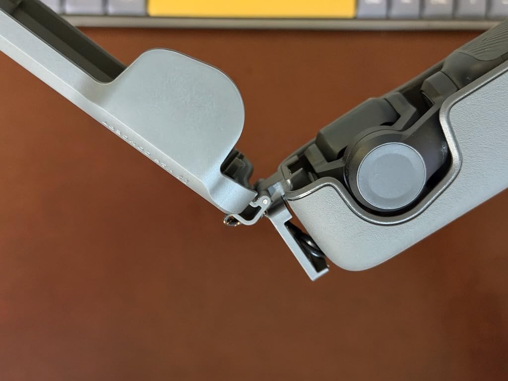 The manufacturing quality is very good, and the two-level locking system is well thought out: a first notch that holds, and a second that locks completely. It is very safe, even if it sometimes makes the opening a little firmer depending on the DJI protections used.