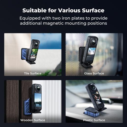 - * [Designed for Insta360 X5]: This K&F Concept magnetic mount stand is specifically designed for Insta360 X5, features compact and foldable, easy to use and carry, it can be quickly absorbed on the iron surface around you, such as cars, trunks, boats, gyms, basketball courts, refrigerators, iron frame, etc., quickly installed and disassembled to meet your timely shooting needs