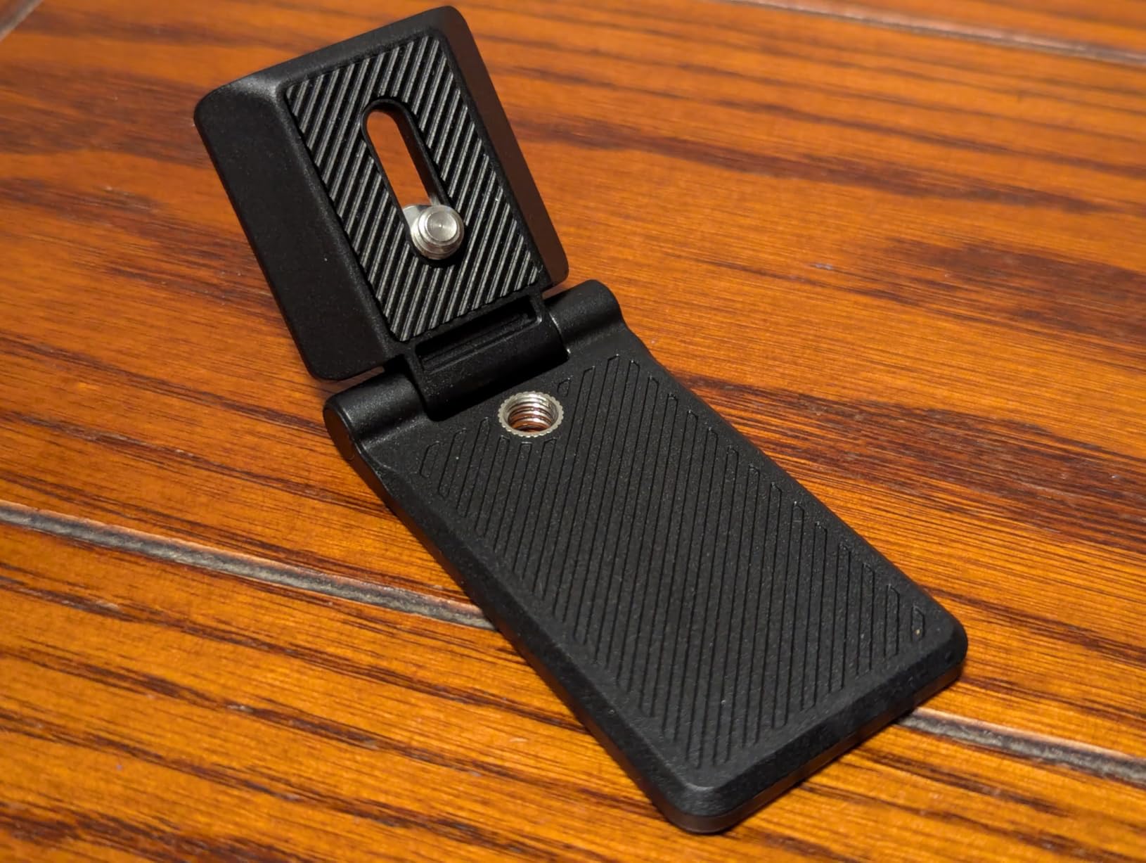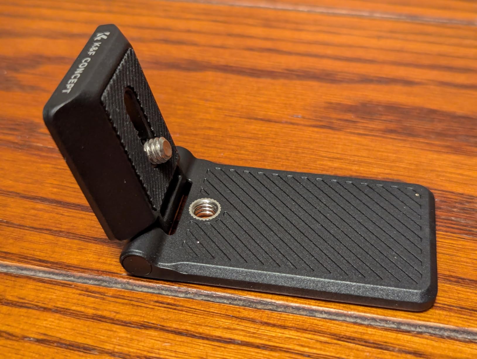 This mount is super versatile. The 1/4" mounting bolt has a flip-up key to allow tool-less tightening, and the rubber pad beneath the mount screw keeps your camera gear from twisting when you torque down the screw.The folding portion provides a wide platform if you want to tripod mount that, but also has a big array of magnets allowing you to magnetically attach it to a steel surface, or using one of the two included adhesive plates.I'm using this to attach a webcam to m my monitor, and it gives me a super secure, super low-profile mount. I'm loving it.