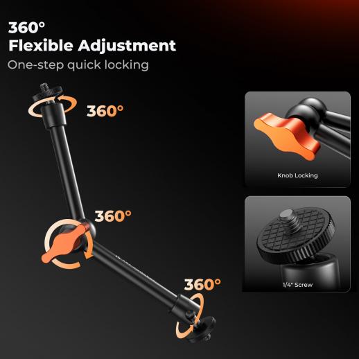 - * 【360° Adjustable Magic Arm】- Featuring a dual ball-head design, the magic arm camera mount offers superior flexibility for effortlessly positioning equipment at your desired angle.