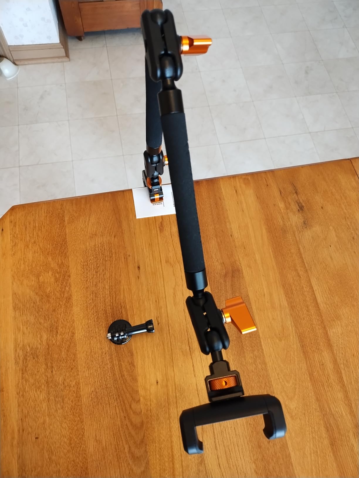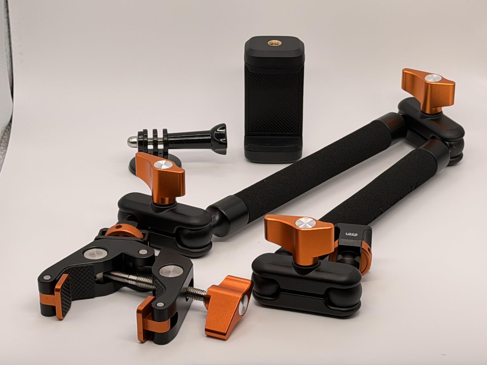 I ordered this product to attach an audio recorder to my tripod during the upcoming launch of NASA's Artemis II. Installing the product to my tripod couldn't have been much easier, and the device is capable of holding more weight than I imagined it could. In my photo, you can see the magic arm holding one of my canon DSLRs (T3i) with a dual-battery grip – I'm not sure I'd trust it to hold my camera this way for long, because the adhesive rubber pad in the clamp was beginning to slide, but it was pretty amazing to see it was capable of it. I'm not deducting from my review for the slightly sliding adhesive, because I was testing it in a way that seems too far from the weight category this item is expected to hold - and I'm confident this issue isn't present when only using a phone, action camera, or other lightweight device.Included are a few attachments – one for an action camera, one for holding a cellphone, and a clamp that can be attached to a table or a bar (like handlebars or a tripod). The action camera part is the standard size used on Gopro, and the magic arm will be more than sufficient for holding a small camera like this. The cellphone one automatically grips your phone – you just pull the sides apart and it clamps onto your phone when you let it go. I gave it a good shake, and the phone didn't budge. The arm features a 1/4-20 thread on each end, which is the standard mount thread for cameras.Adjustments are easy, and you can get your camera in just about any position you'd want - but there is a bit of wobble where the clamp meets the arm if you don't really put some effort in torquing the arm into the threads. An allen key is provided, and there are little holes in the mount to allow you to use it as a lever, presumably for this purpose.At the time of writing, the list price is in the $45 range. Initially, I thought this was a bit steep – but the magic arm is a lot more robust than I imagined it would be... Almost the entire body, excluding the grips and rubber pads, is made of metal - and I certainly never imagined it would be capable of holding my heavy DSLR.Overall, a great and functional tool for anyone looking to attach a phone, action camera, or anything with a 1/4-20 thread to a table, tripod, or handlebars.