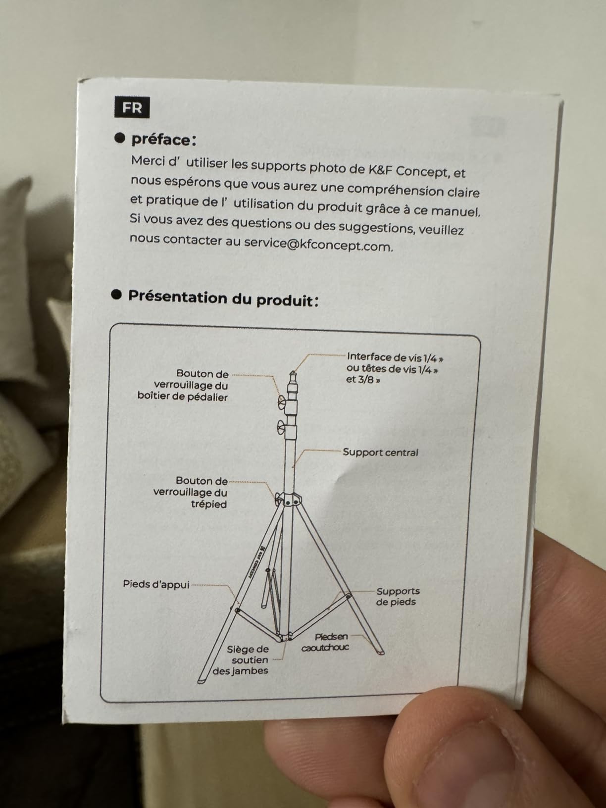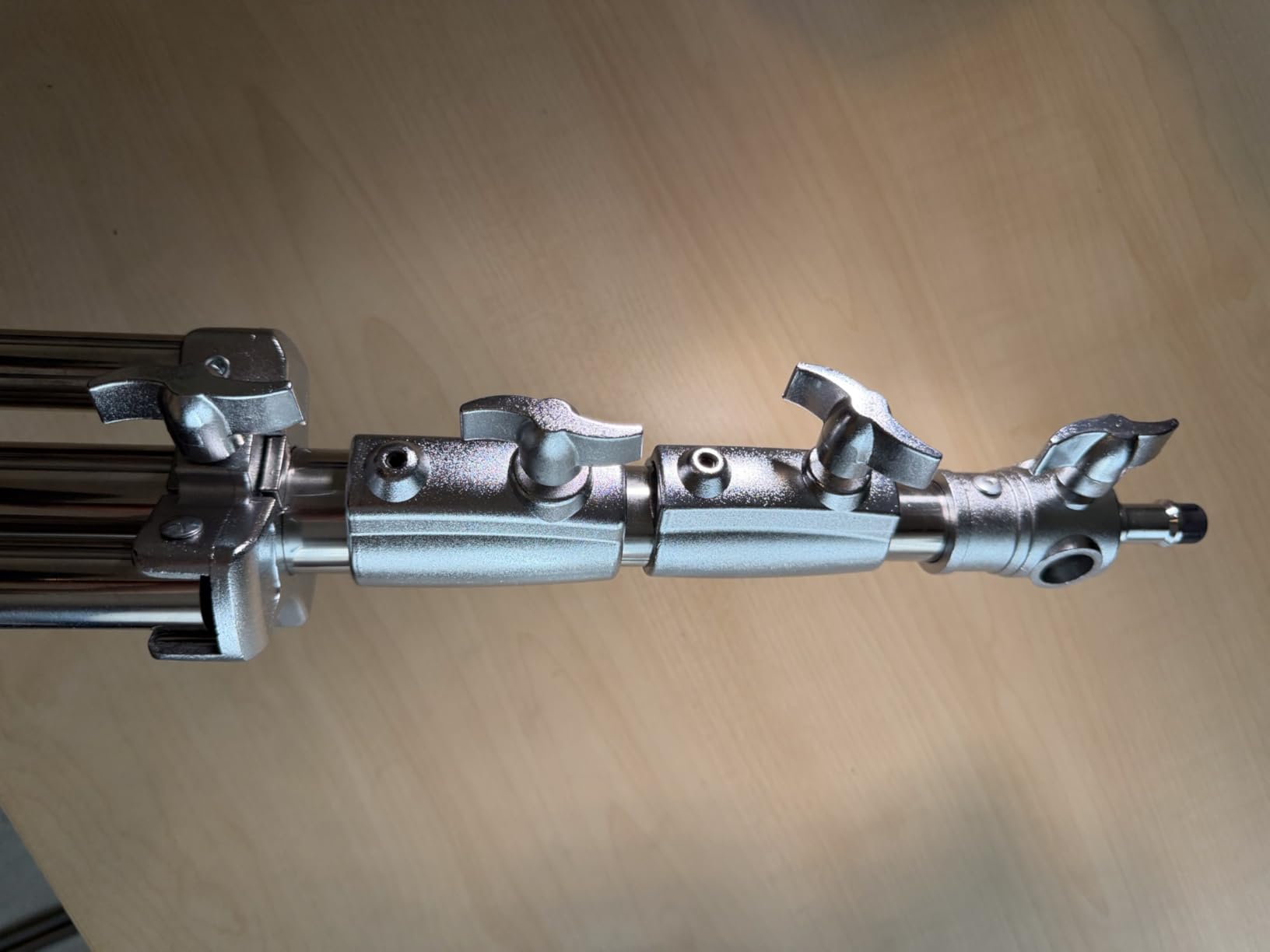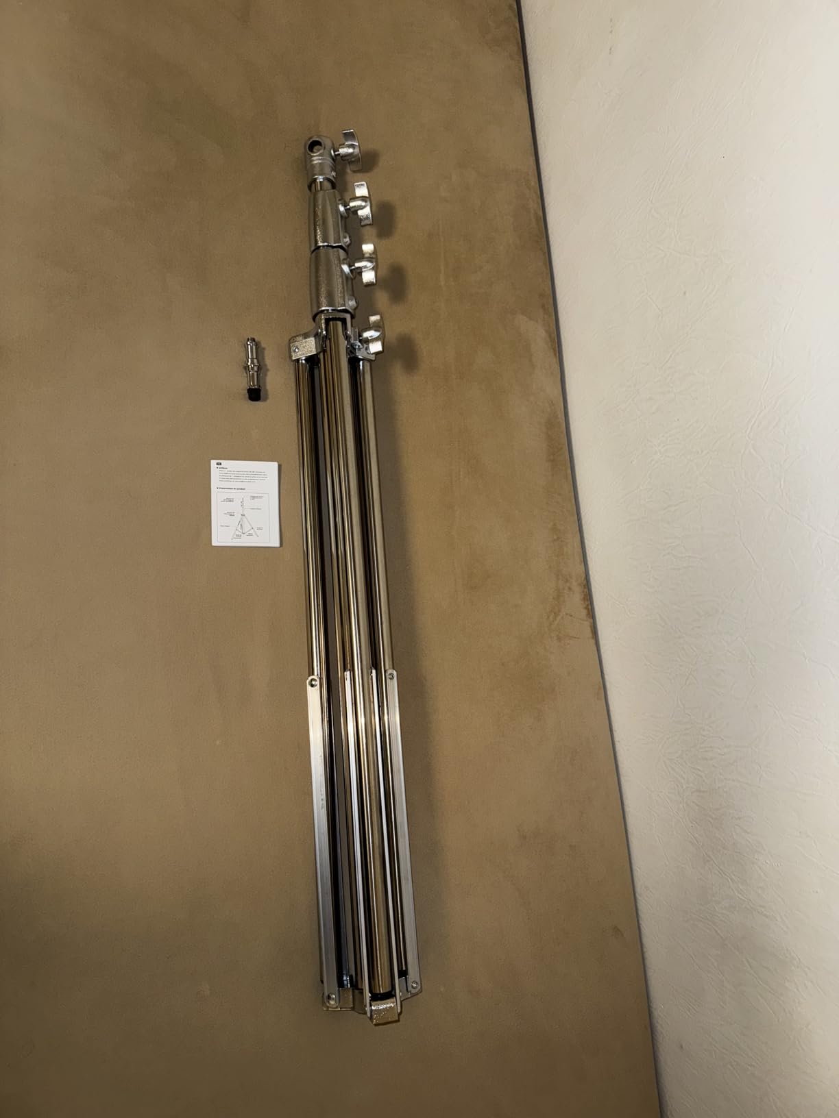 Stainless steel lighting tripod. It's very robust. It can hold up to 10 kg. It's not like the people in the photograph who say they can hold up to 10 kg, and with 3 the ball joint makes water. Here it supports 10 kg and I would say even more. From 1 meter to 2.90. You can position the light bulb high enough to illuminate from above without needing a crane. It comes with the 1/4" adapter and when you turn it upside down it is 3/8". It can be placed on the tip or on one side. It is divided into 3 segments, with large and forceful threads. Reliable. Each section has a shock absorber to prevent dry shocks to the equipment if by mistake we suddenly loosen a thread. It weighs just over 2kg, making it quite transportable. I have only missed that it comes with a cover, as this type of tool usually comes with it, although I understand that it is more intended to be a study tripod than a “field” tripod. The price is commensurate. With K&F you can be sure that you are getting a good tool but without paying a brand. Totally recommended. I probably won't keep one. When I need another one I will turn to this one.