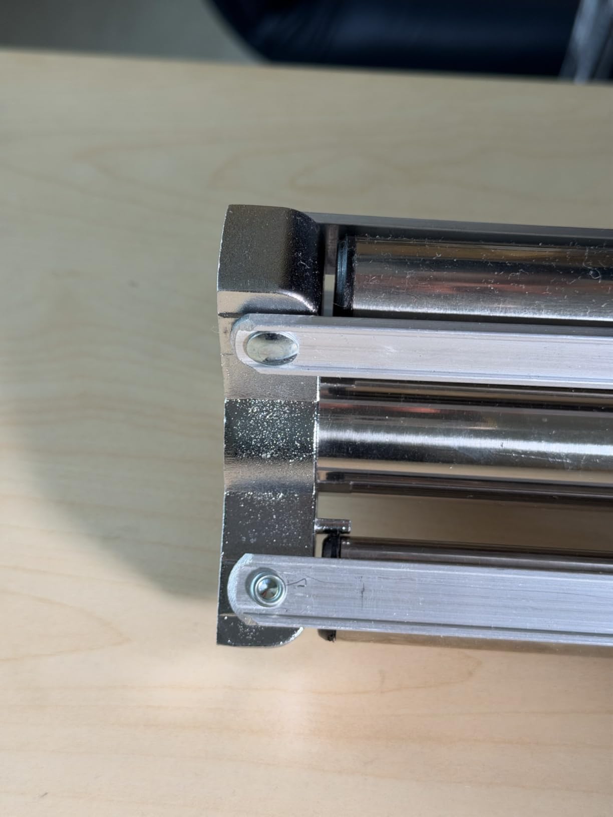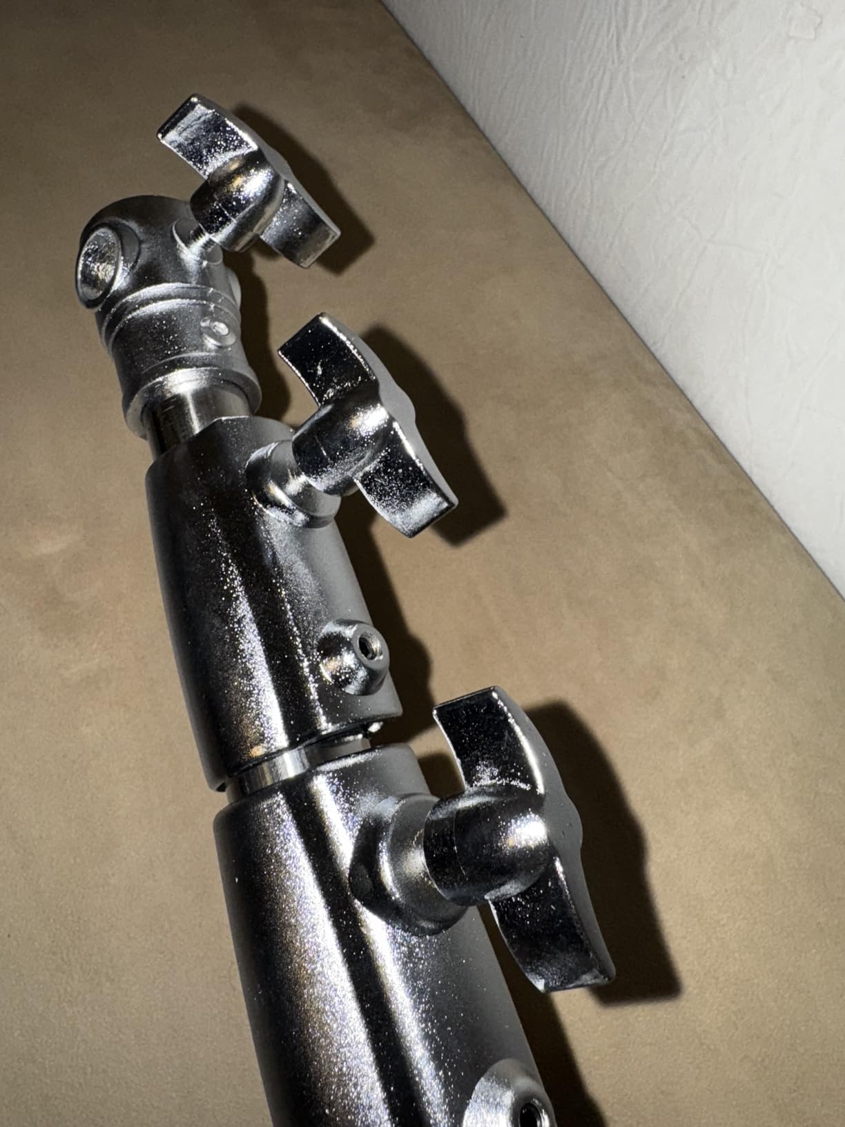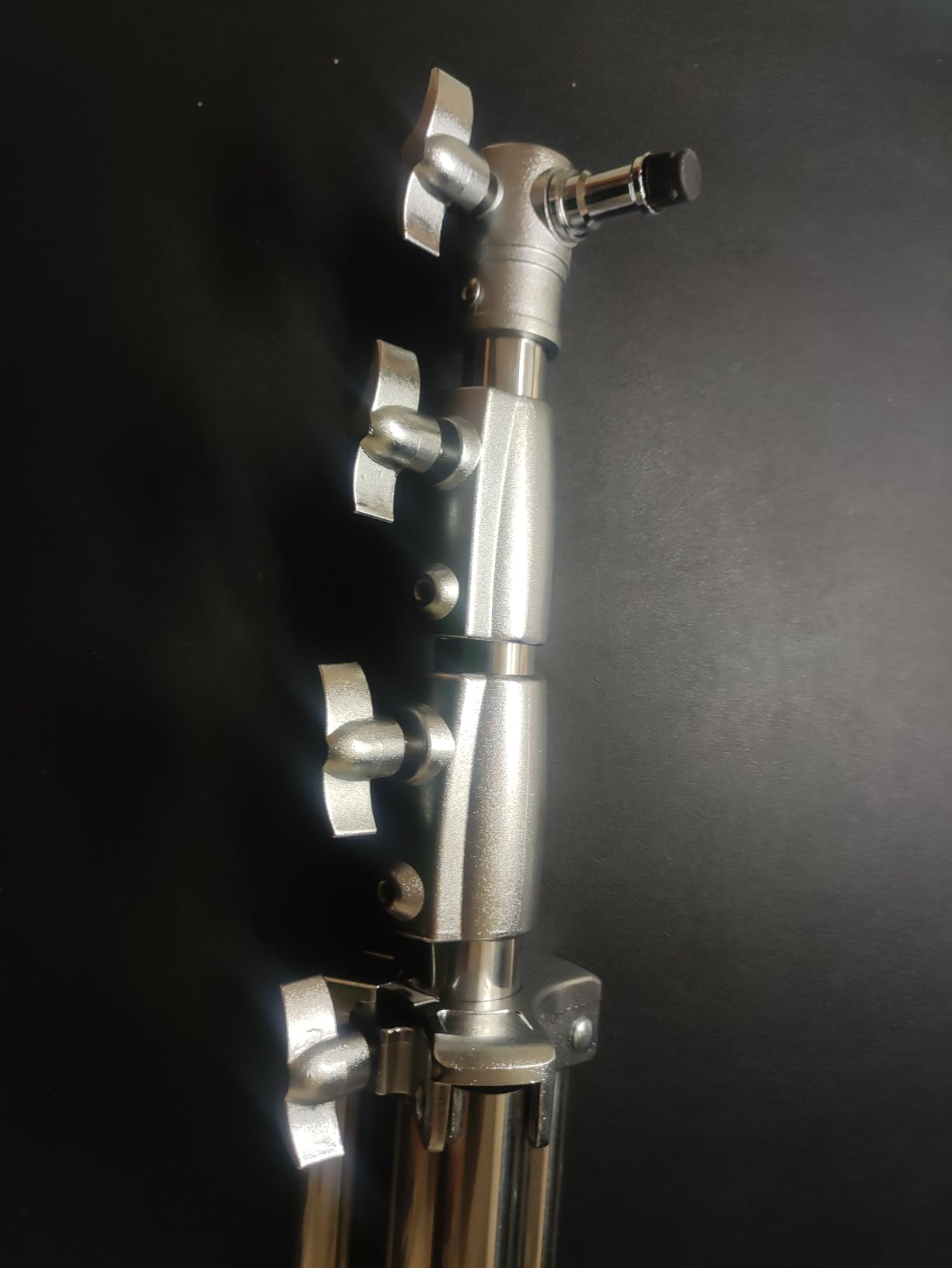 I own several stainless steel light stands, and this K&F stand is different. My other stainless steel stands are heavier and have a cleaner finish. As my photos show, this stand has a slightly "rough-hewn" finish, leaving a texture. This texture does not impede the functionality of the stand. The thumb screws, sliding poles, and springs function very well. The stand has a very wide and solid base. The ability to move the stud 90° is handy. I like the weight for taking on location.This is a good stand for a non-professional. This stand is not designed to take the punishment of daily production.