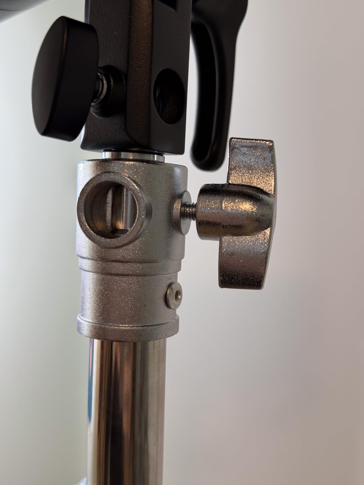 The K&F CONCEPT stainless steel light stand seems visually appealing to me, the workmanship looks okay so far, although not at the level of well-known brand manufacturers such as Manfrotto, not as sturdy as more expensive branded stands. The stand has screws to fix it, I find a clamp mechanism more practical, but it works so far. Since I also use a larger Manfrotto light stand (with gallows function), I can also compare it with that... In any case, the K&F CONCEPT stand can be set up flexibly with your legs, depending on whether you have a little more or less space and need it to be more stable... The extension goes up to about 2.8 meters, which seems a decent height to me and in many normal rooms it goes up to the ceiling. The elements are slightly cushioned, as I would expect from such a stand. You can flexibly install various anchors at the top and thus also use other thread formats... With a Godox professional mobile flash (AD400), the whole thing seems sufficiently stable to me with smaller light shapers. In any case, a useful addition for me, definitely more than sufficiently stable for clip-on flashes with light formers. For daily use or very frequent assembly and disassembly, I would generally prefer tried and tested brand manufacturers such as Manfrotto, but for occasional use it seems absolutely sufficient.