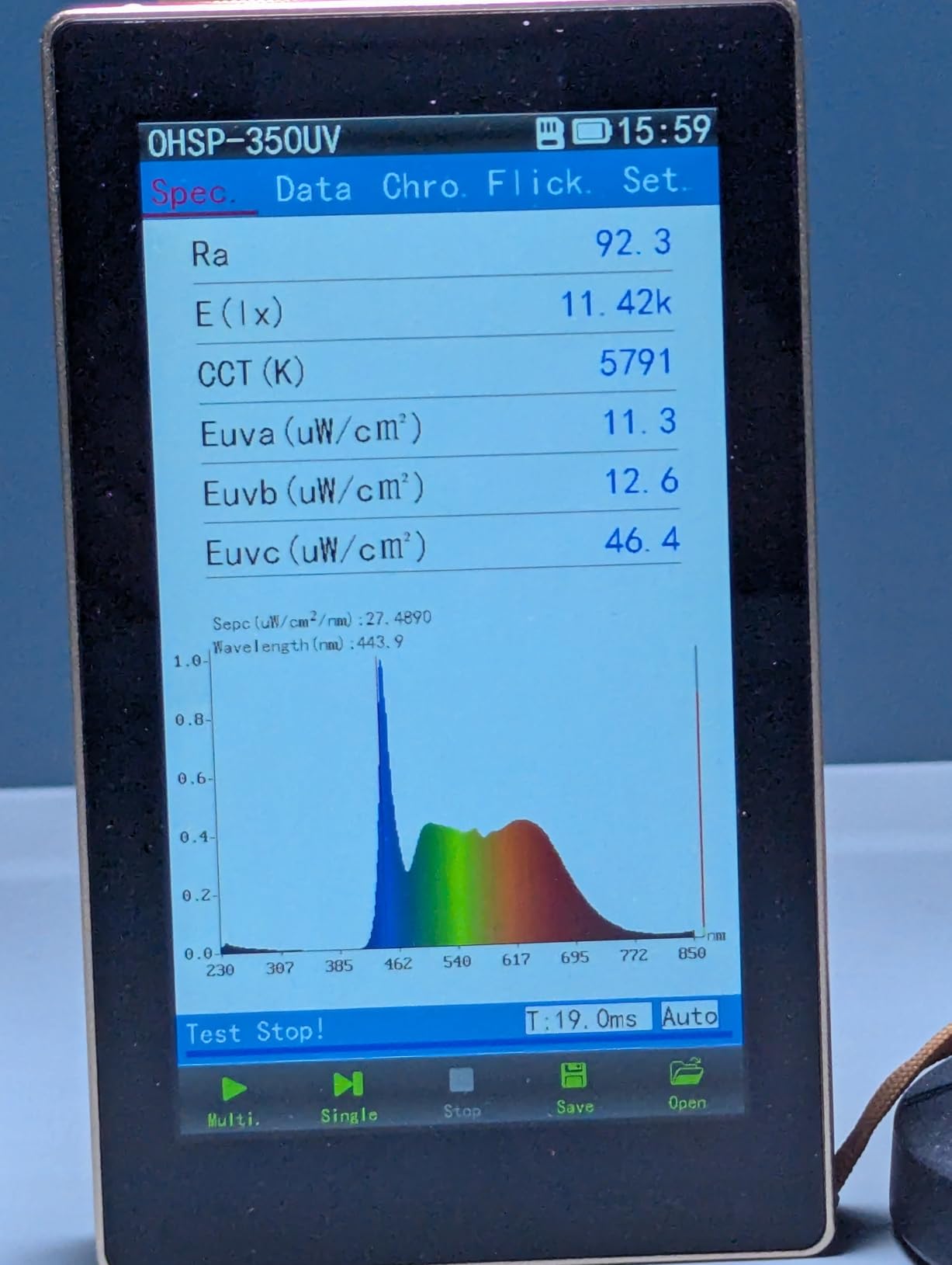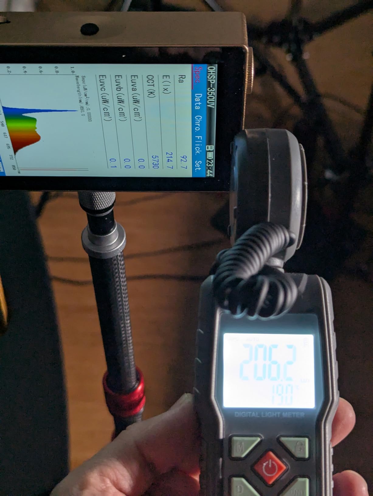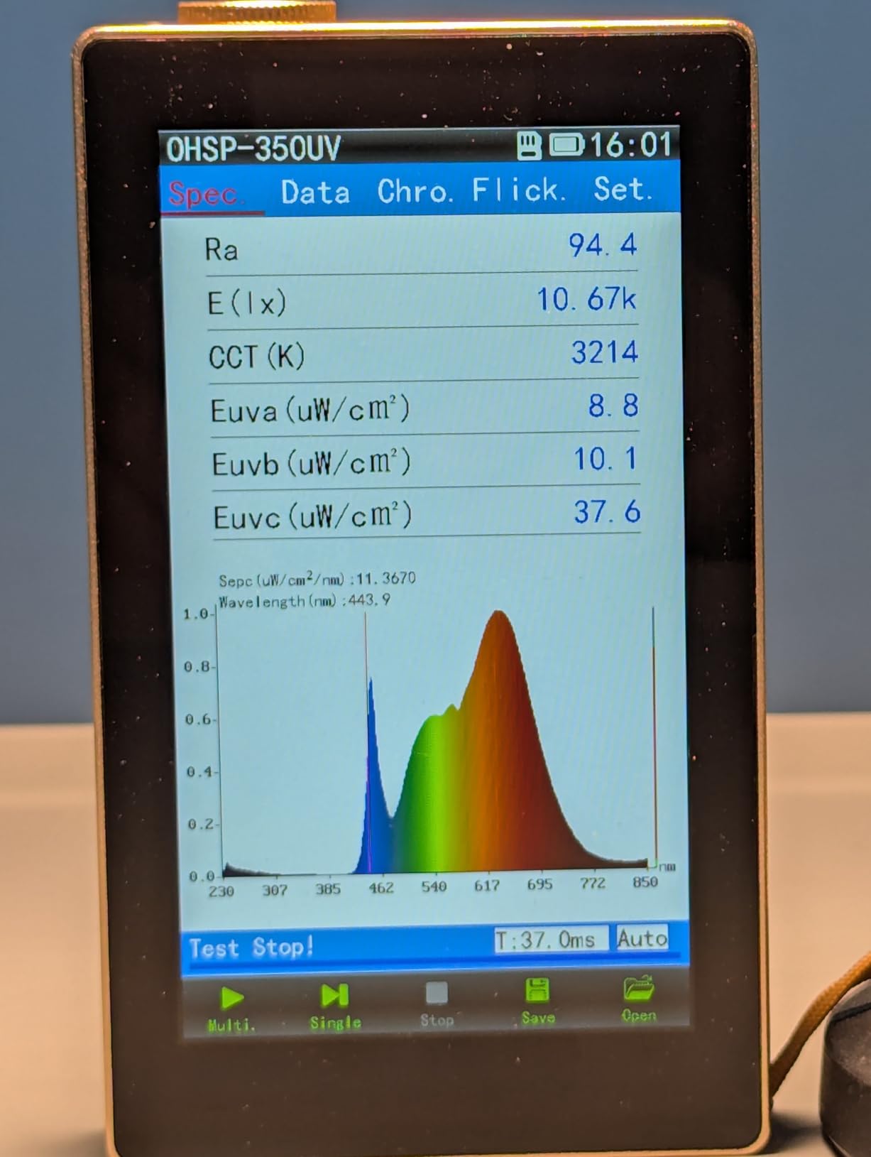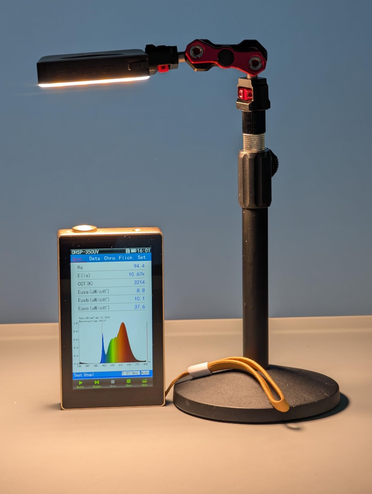 I have a bunch of different compact RGB lights, from very bright with built-in fans, to very compact and not terribly bright. This is a pretty good budget compromise. It's reasonably bright, but doesn't have a distracting fan. It has a real display with an easy-to-use interface that tells you what your brightness settings and color temperatures are, and it has effects settings, which I never use.The user interface is pretty easy to use. I like that it has a sliding power on switch, so it's more difficult to turn on accidentally, although I think the two-stage power up future of some of my other battery powered lights is even more resistant to accidental energizing of the lights.There's a mode selector, as well as a thumb wheel to scroll through the brightness, color temperature, or RGB settings. The display is pretty easy to use. The labeling of the individual buttons is hard to read, especially in low light, which is annoying. It's not too difficult to memorize the button functions, but it would be nice for them to be labeled well enough to be read in low light.Although the light listed as having CRI above 95%, I wasn't able to verify that. The readings I got were under 95%, and very depending on the color temperature settings.I got a CRI of 93 with the light set to 5700 k, and a meter reading of 5730k and 215 lux on my 350UV at 1 meter.Overall this is a cute little light. It is very lightweight and compact. Build quality is okay, but the detents on the thumb wheel are a bit soft and not very high quality feeling.