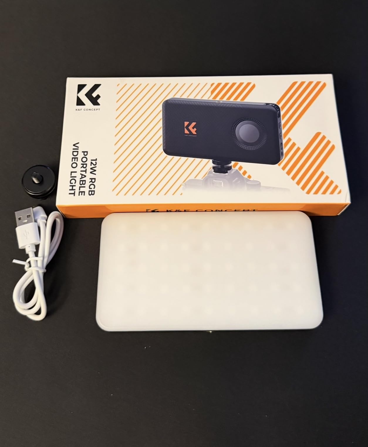 The product comes with a good packaging with the classic care in design that we find in the K&F brand in the package we find: - RGB light - 1/4" cold-shoe support - charging cable - package leaflet I will not dwell on the technical specifications because they are already widely mentioned in the product description but, I will tell you about my user experience and impressions. Before talking about this light, we must immediately clarify that it is in a budget range and therefore I will evaluate it for this group to which it belongs. I test the light in different areas, from some shootings such as colored filling light to the video field, the light immediately turned out to have its own strong quality in battery life, which turns out to be truly remarkable, in fact there is a USB-A input to use the light as if it were a powerbank, there are screw connections to be able to use it also various photographic accessories. The light emitted is not very strong but it is enough to use it as a filling in photography and it is very useful in the video field, there are various effects in the menus such as the simulation of televisions, lights that flash, etc., all the settings are selectable using buttons and displayed on its color display, from which we can also choose to have only white light and its white point or rotate between colors in search of what suits our shots. The upper part of the light has a diffuser which greatly dampens the “beads” effect and tends to make the LEDs less noticeable and give soft shadows. In conclusion, it is an affordable product perfect for those who are just starting out or for those who need a long-lasting, small, compact and easily transportable light, my final rating for this product is 5 stars