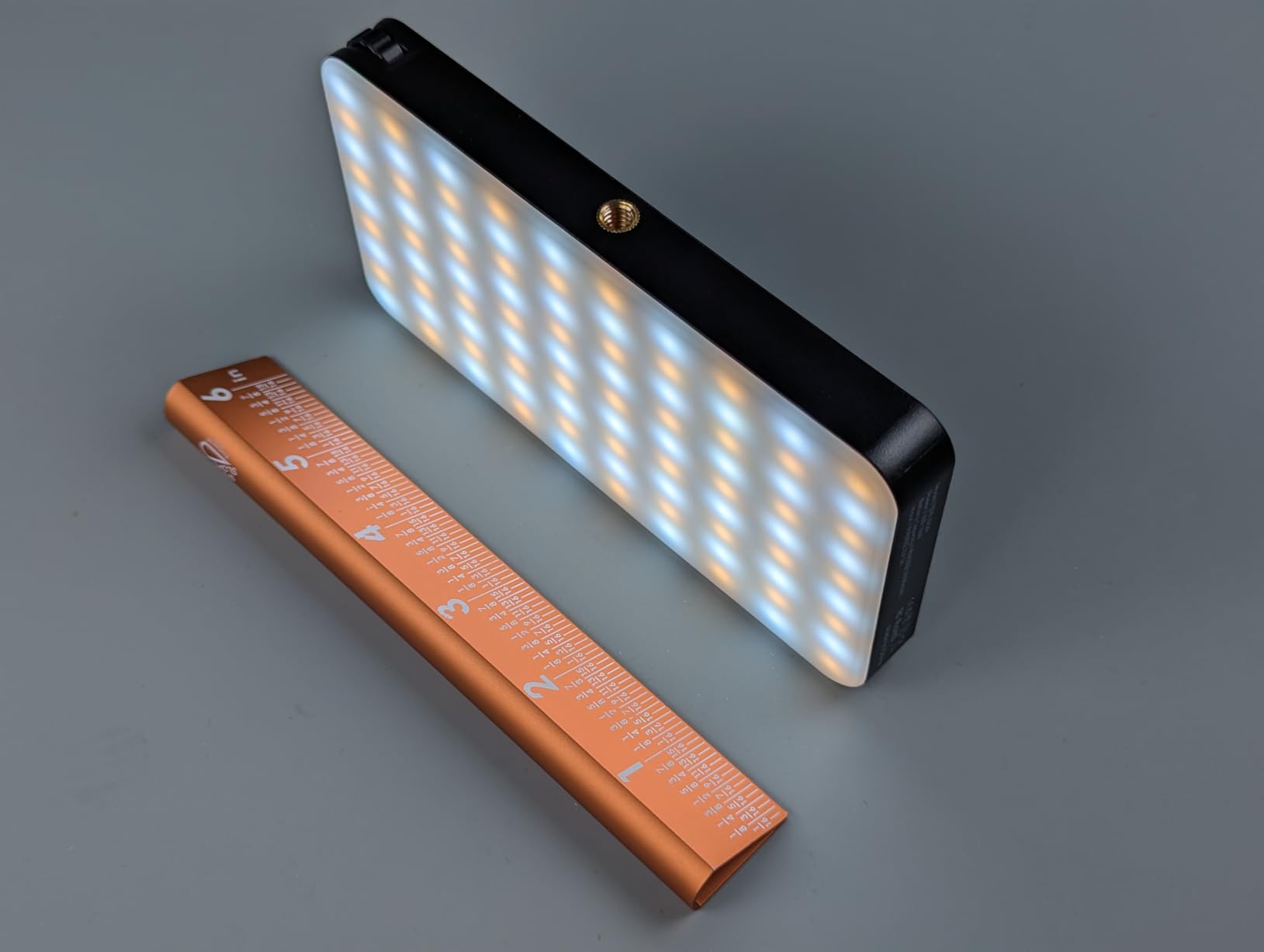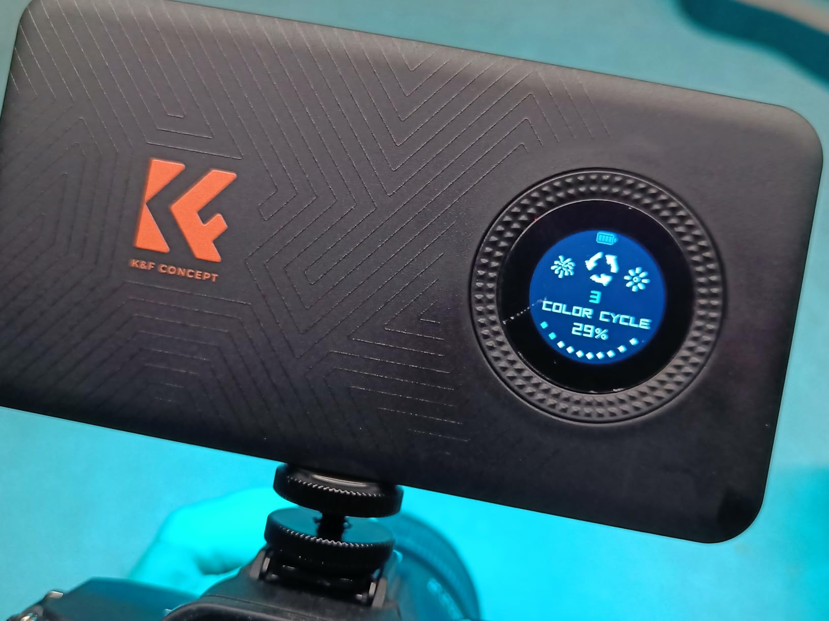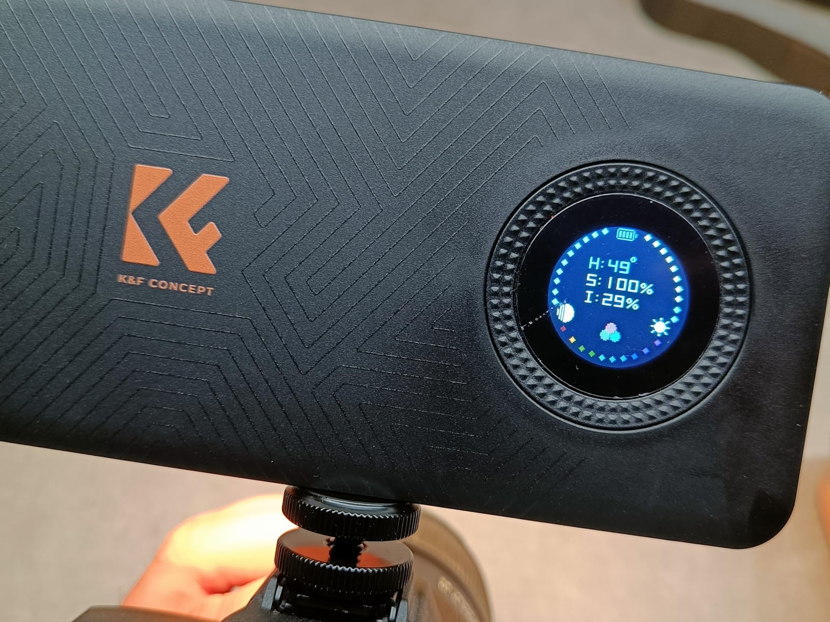 K&F crushed it with this one. It’s about the size of a phone, has a bright 12W output, full RGB with H/S/I control, 2700–7500K white light, and 13 built-in effects. The OLED screen and side buttons make adjustments quick.USB-C fast charges the 5000mAh battery, and there are 1/4" threads on two sides plus a cold shoe for flexible mounting. For the price, this is an awesome, versatile light for photo/video kits.
