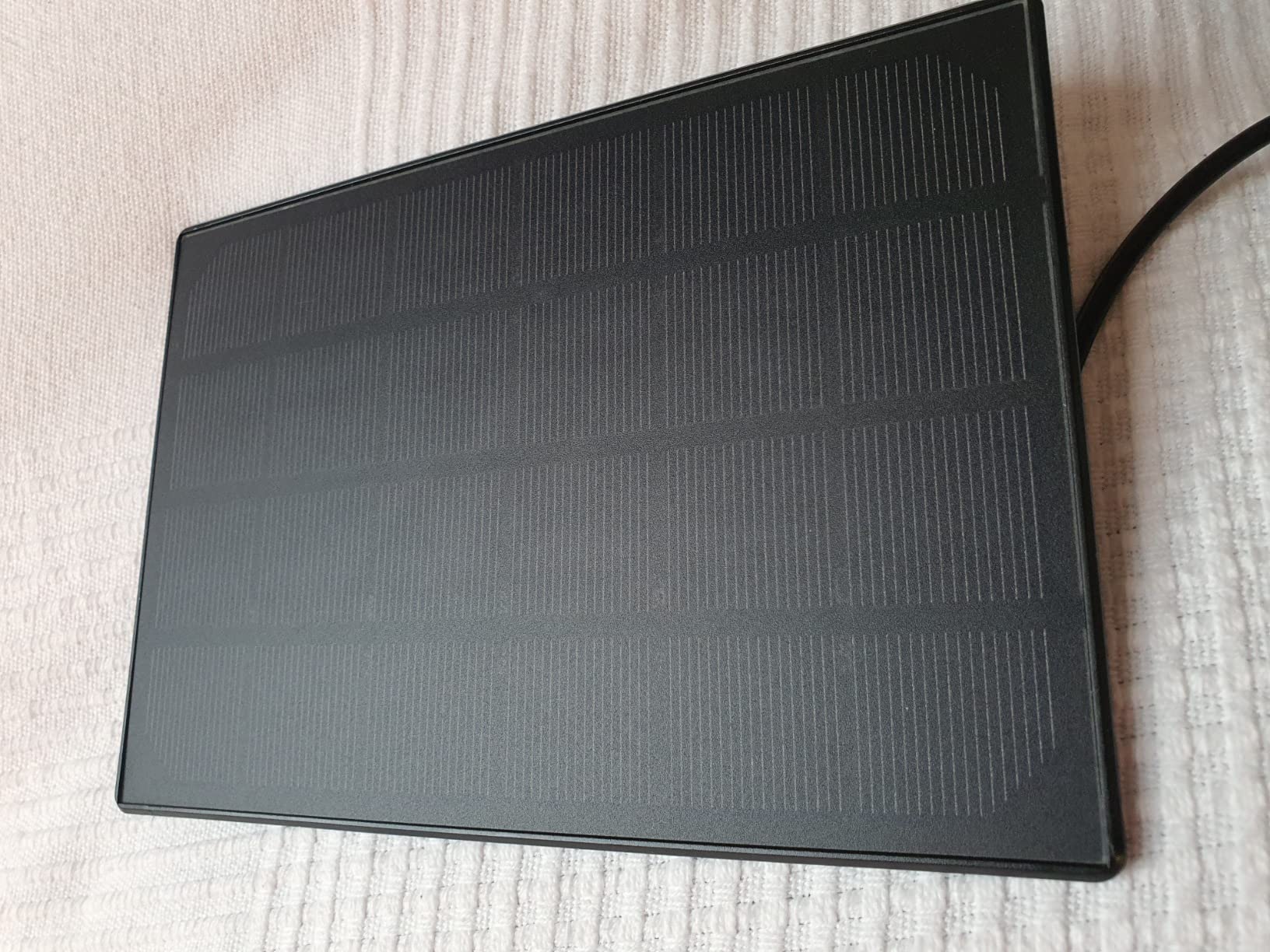 I use the panel to charge my Eufy cam in the carport, especially since the battery life of the device does not match the manufacturer's specifications. As usual, delivery was very quick and well packaged. The cable supplied is a reasonable length and has a USB C connection. What can I say? It works great. A very good alternative in terms of price.