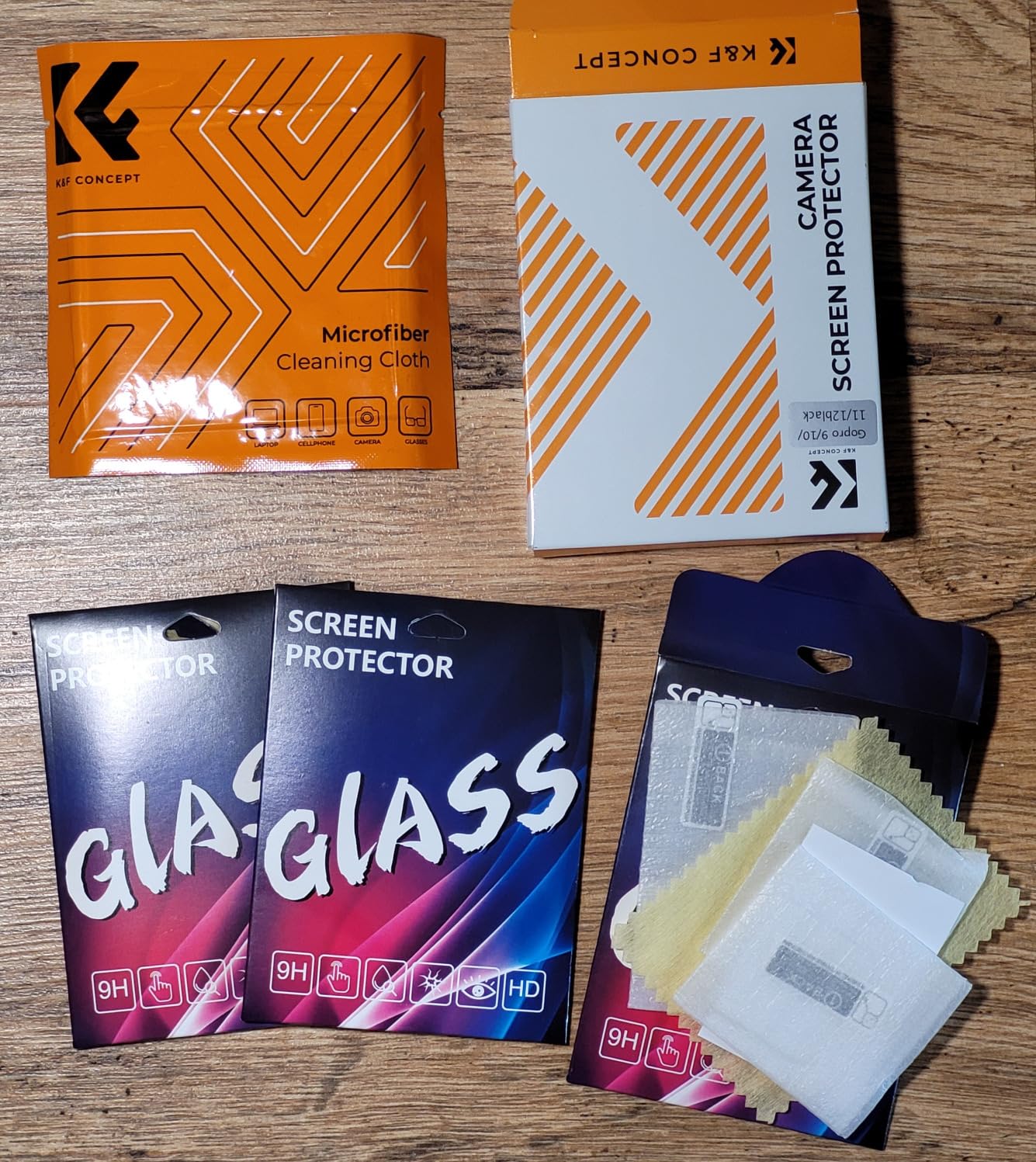 Using on a GoPro 10, these provide great protection from everyday wear and tear.I have applied the glass protector to both the rear screen and front screen, and although there is one supplied, I never add protection to the actual camera lens, which is a personal choice, but I like to get the clearest image possible, without any third party lenses getting in the way.The package as a whole is exceptional value, firstly you get 3 x sets of glass protectors, an application wipe and dust remover stickers, also included is a micro fibre cleaning cloth, which I haven't opened, as I already have one in use.Installation can be a little bit tricky, but thankfully you are able to lift the protector off, if like me, you need to readjust its position, or remove a stray bit of dust.As you can see from the attached images, take your time and you should get a smudge and bubble free application.More than happy with the finished result.