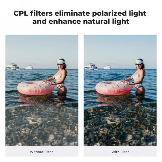 - * [CPL Filter ]: Cut reflections from water, glass, and other non-metallic surfaces while boosting color saturation and contrast for richer, more vibrant visuals.