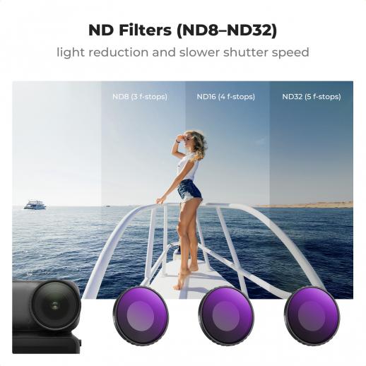 - * [Balanced Exposure in Varied Light]: With ND8, ND16, and ND32 filters, you have the perfect tool for everything from soft morning light to brighter shaded scenes. Prevent overexposure and preserve crisp details by precisely controlling the light entering your camera