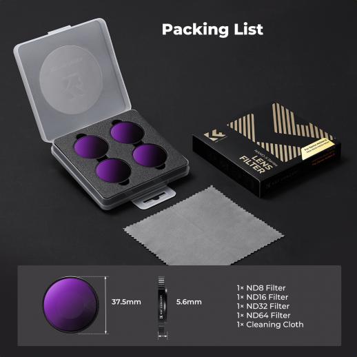 - * 【4 Pack ND Filters Kit 】 K&F Concept 4-Pack ND Filters Kit for DJI Osmo Action 6 - Includes ND8, ND16, ND32, ND64 Lens Filters - Enhance Your Photography and Video Footage.
