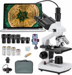 Compound Trinocular Microscope 40X-5000X Magnification for Lab, Biology, Education, Electronic Eyepiece and Mechanical Stage, WF10x and WF25x Eyepieces, Abbe Condenser