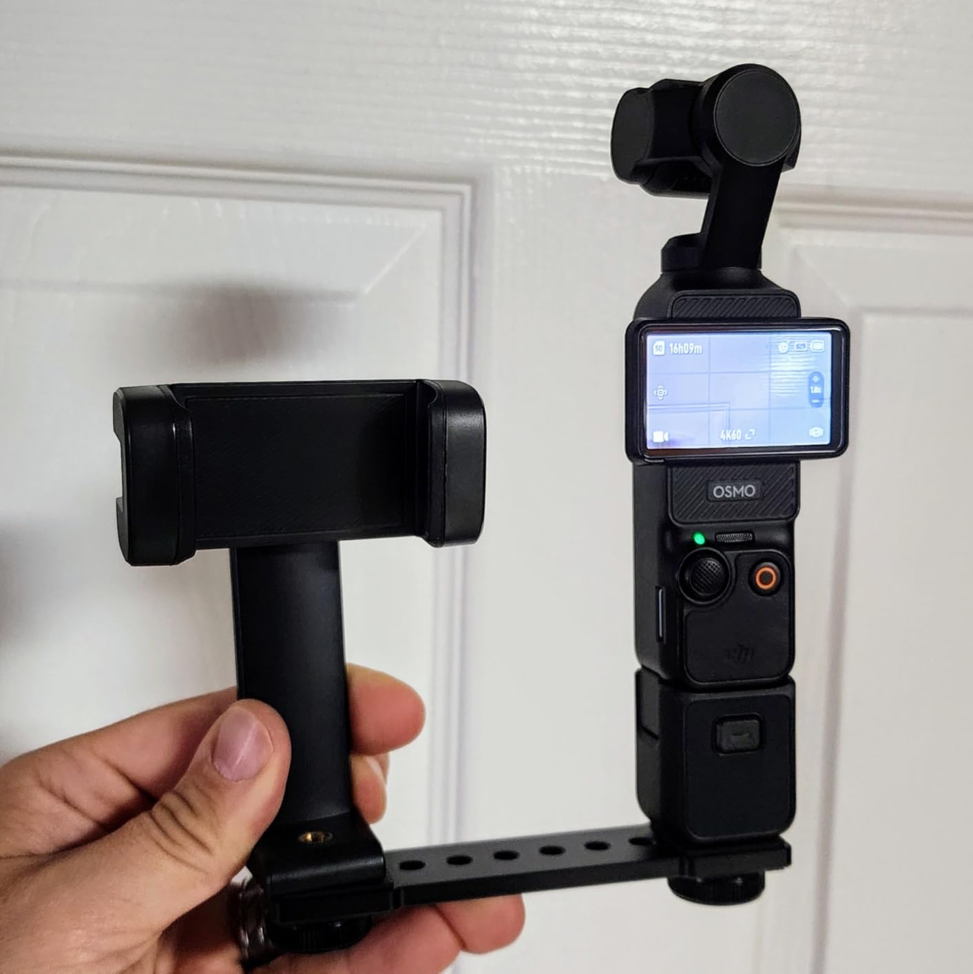 The design is very simple and easy to use. It breaks down into two parts that are straight and small to help save space in your pack. Each part has rubber grips to keep the joints from shifting where screwed in. The phone mount opens from both sides so any sized phone will fit. The elasticity of each arm feels nice and tight offering sufficient grip on the phone. I would have pictured my phone which is a larger Galaxy S23 Ultra and fits great in the mount but I needed to take the photo using the phone. Of course the Pocket 3 goes on perfectly and again, with the rubber foot at the screw, doesn't shift. You will find this a perfect accessory for multi device recording.
