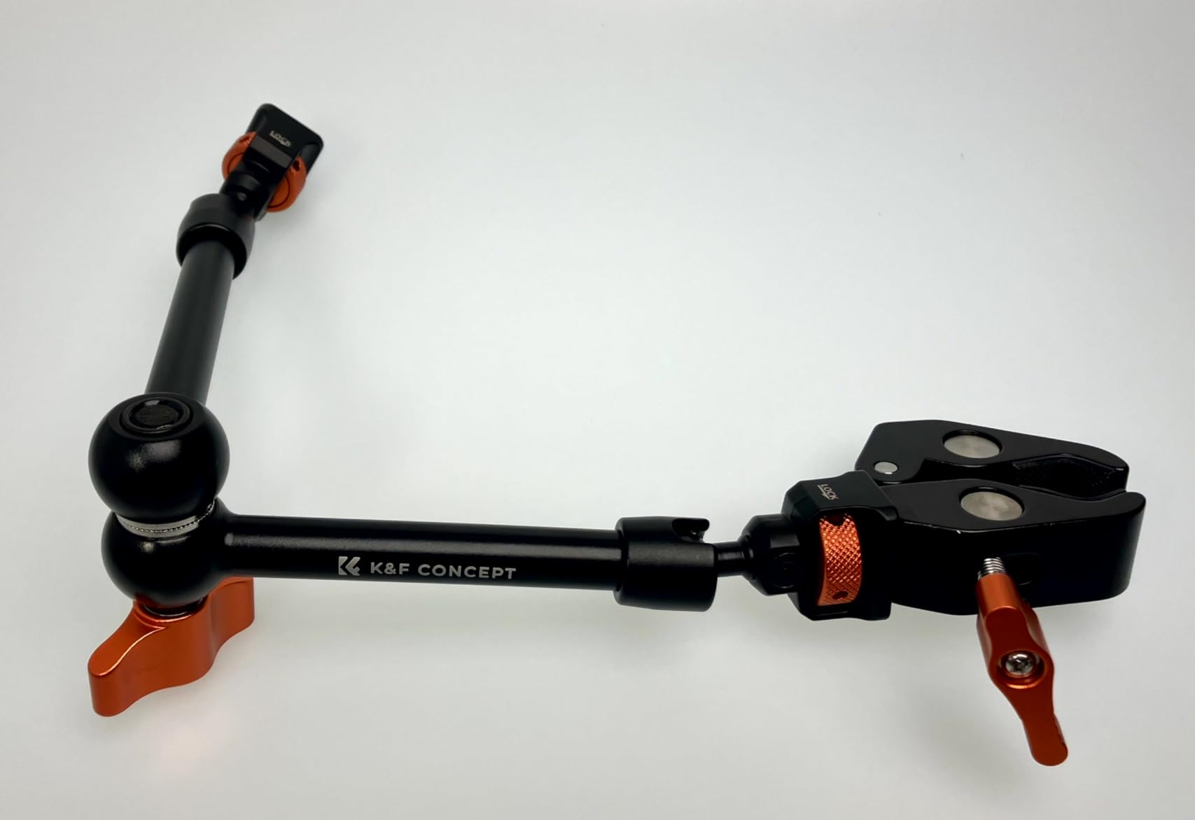 The Magic Arm from K&F Concept is well made and looks chic. The central swivel has good guidance so that the adjustment is easy. This is particularly important because when the central screw is released, all joints are released. If you still have to make sure that the two halves of the central joint lie exactly on top of each other when aligning the equipment, it gets tricky. The arm is sturdy enough for lightweight accessories such as smartphones (with an extra holder), small video lights or monitors. I wouldn't attach a full-frame camera because then, at the latest, the clamp will reach its limits.