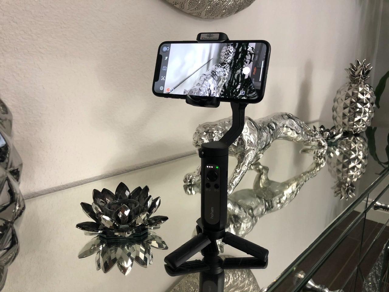 i like the fold-able design so much since I can put the gimbal in my pocket when I am travelling around. The size is so small compared with my other traditional gimbal. The weight is also noticeably lighter. The Hohem pro app is easy to use and it comes with lots of pre-installed program to help with the filming. I am having lots of fun with this gimbal and I think that I will make better film with the help of this portable gimbal.